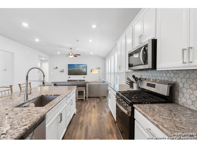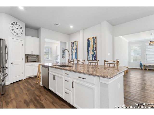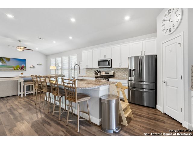 Motivated Sellers, offering to pay up to $5,000.00 towards Buyer's Expenses. Located in the desirable Sienna neighborhood off 1604 and North Highway 281, this gorgeous one-story home offers 3 bedrooms, 2 bathrooms, and a bright open layout perfect for modern living. The spacious kitchen features granite countertops, stainless steel appliances, and an island with bar seating that flows seamlessly into the living area-ideal for entertaining and family gatherings. A versatile dining or flex space off the kitchen can serve as a formal dining room, home office, playroom, or cozy reading nook. The primary suite provides a peaceful retreat, complete with dual vanities, a soaking tub, and a separate shower. Step outside to a covered patio and a generous backyard, perfect for relaxing or outdoor fun. Surrounded by top-rated schools, shopping, and dining, this beautifully maintained home combines comfort, style, and convenience in one of the area's fastest-growing communities-ready to welcome you home.