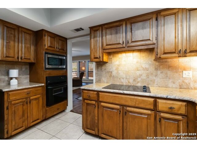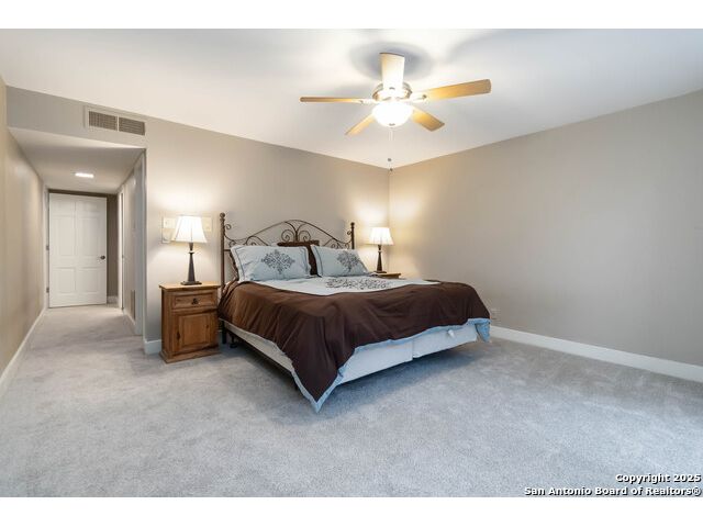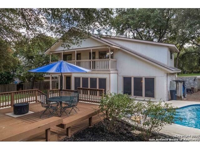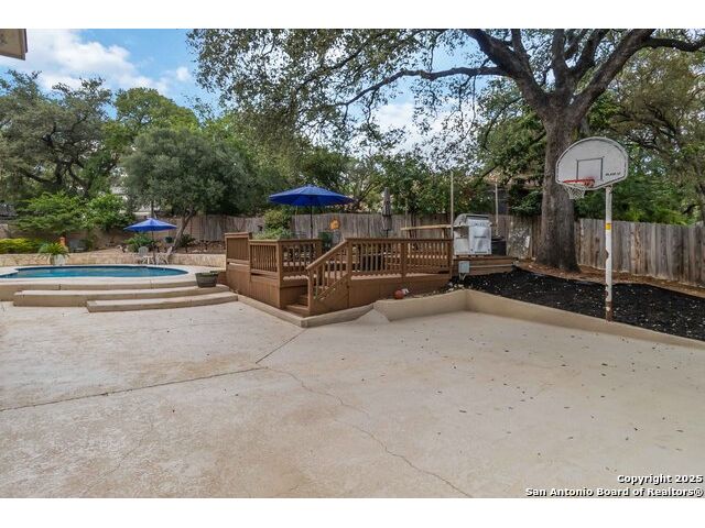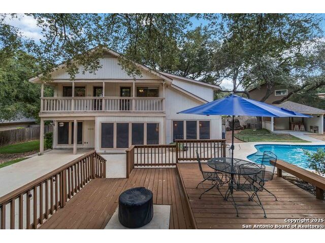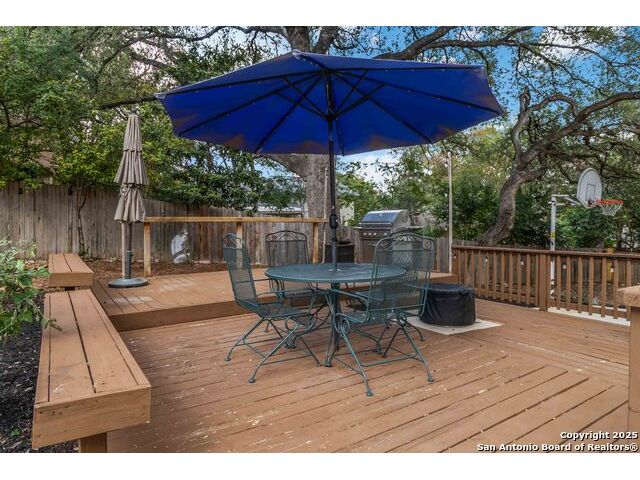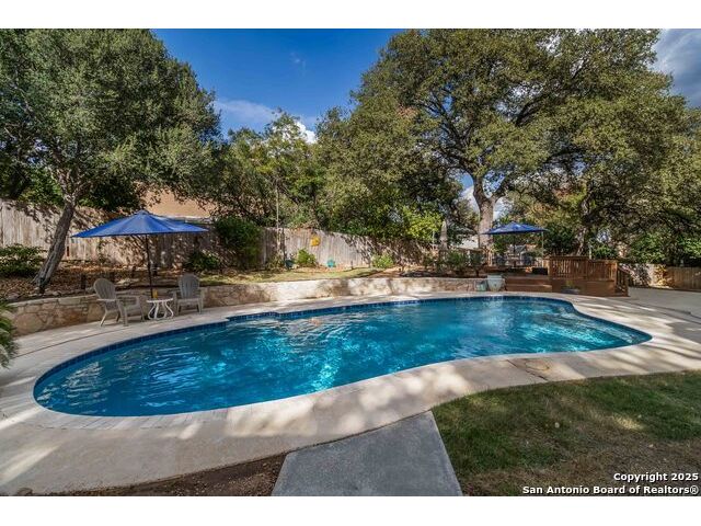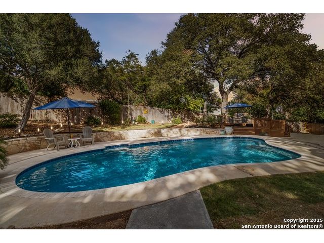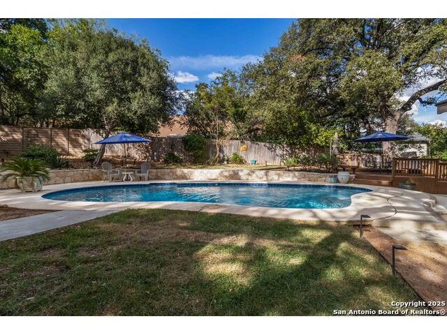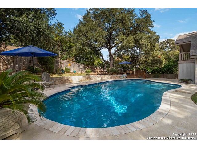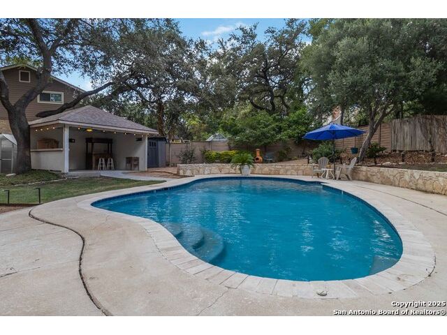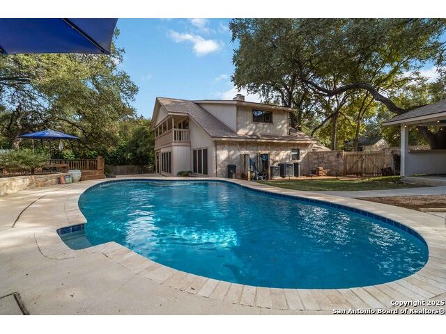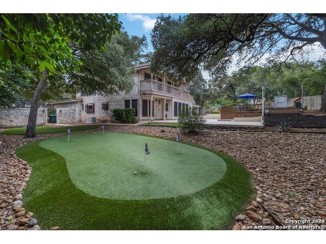 Where timeless charm meets easy living in the heart of North Central San Antonio. Nestled on a peaceful, tree-lined street, this beautifully maintained home invites you to slow down, stretch out, and savor every moment. Inside, you'll find a comfortable balance of space and sophistication - from the welcoming foyer with updated lighting to the sunlit kitchen featuring granite counters, built-in oven and microwave, smooth-top stove, ice machine, and cheerful garden windows bringing in natural light and views of the side yard. The downstairs primary suite offers a serene retreat away from it all, complete with a recently updated ensuite with shower and dual vanities, and a roomy bedroom overlooking the pool. Meanwhile upstairs are three spacious bedrooms, a double-sink bath, and a large game room providing plenty of room for everyone to spread out. Out back, the fun continues. Enjoy a refreshing swim, relax under the covered cabana, shoot hoops on the oversized patio, or practice your short game on the private putting green and driving net - or perhaps you'd simply prefer staying in touch with nature by spending time in your very own green house. And when it's time to eat, make the most of the oversized deck with plenty of space for both grilling and dining. This thoughtfully designed outdoor oasis is truly intended for both play and leisure. Bad weather warnings won't even dampen your joy, as you'll be the only home on the street with lights aglow, thanks to your Generac whole house generator! Set on nearly half an acre surrounded by mature oaks, this home is part of a friendly, walkable community known for its rolling hills and easy access to everything. From here, you can be at the airport, shopping, or your favorite restaurant in minutes. A home that's ready for your next chapter - with comfort, convenience, and character that never goes out of style.