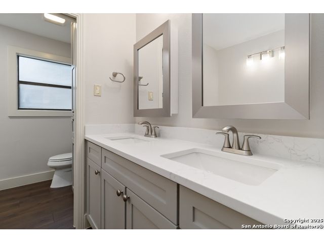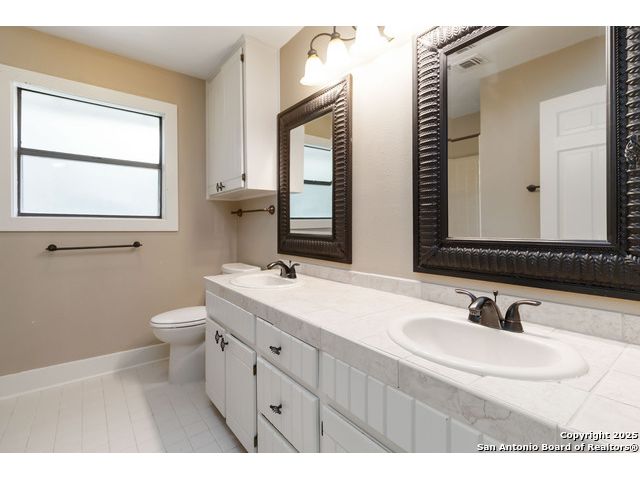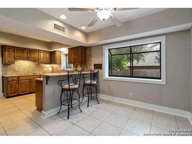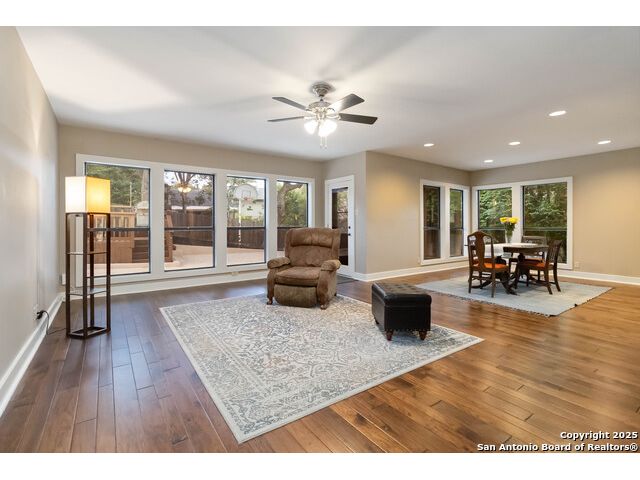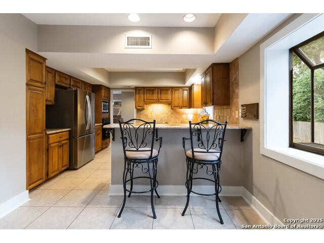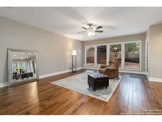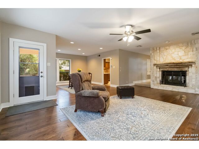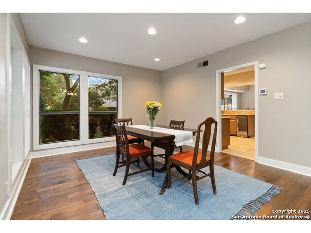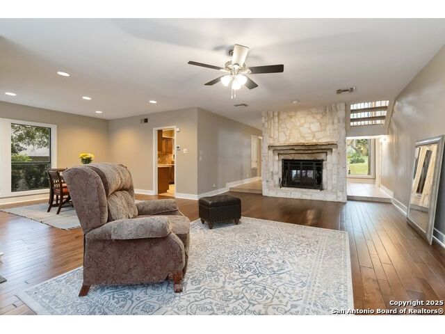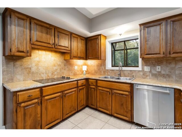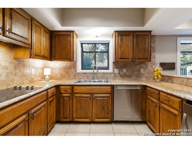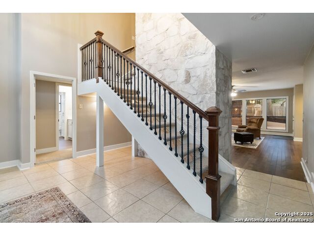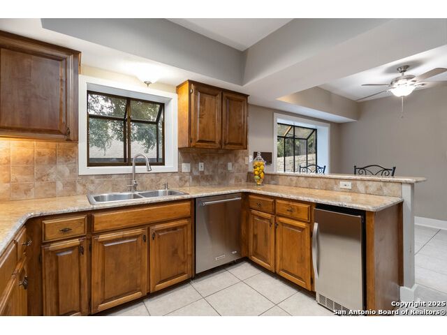 Where timeless charm meets easy living in the heart of North Central San Antonio. Nestled on a peaceful, tree-lined street, this beautifully maintained home invites you to slow down, stretch out, and savor every moment. Inside, you'll find a comfortable balance of space and sophistication - from the welcoming foyer with updated lighting to the sunlit kitchen featuring granite counters, built-in oven and microwave, smooth-top stove, ice machine, and cheerful garden windows bringing in natural light and views of the side yard. The downstairs primary suite offers a serene retreat away from it all, complete with a recently updated ensuite with shower and dual vanities, and a roomy bedroom overlooking the pool. Meanwhile upstairs are three spacious bedrooms, a double-sink bath, and a large game room providing plenty of room for everyone to spread out. Out back, the fun continues. Enjoy a refreshing swim, relax under the covered cabana, shoot hoops on the oversized patio, or practice your short game on the private putting green and driving net - or perhaps you'd simply prefer staying in touch with nature by spending time in your very own green house. And when it's time to eat, make the most of the oversized deck with plenty of space for both grilling and dining. This thoughtfully designed outdoor oasis is truly intended for both play and leisure. Bad weather warnings won't even dampen your joy, as you'll be the only home on the street with lights aglow, thanks to your Generac whole house generator! Set on nearly half an acre surrounded by mature oaks, this home is part of a friendly, walkable community known for its rolling hills and easy access to everything. From here, you can be at the airport, shopping, or your favorite restaurant in minutes. A home that's ready for your next chapter - with comfort, convenience, and character that never goes out of style.