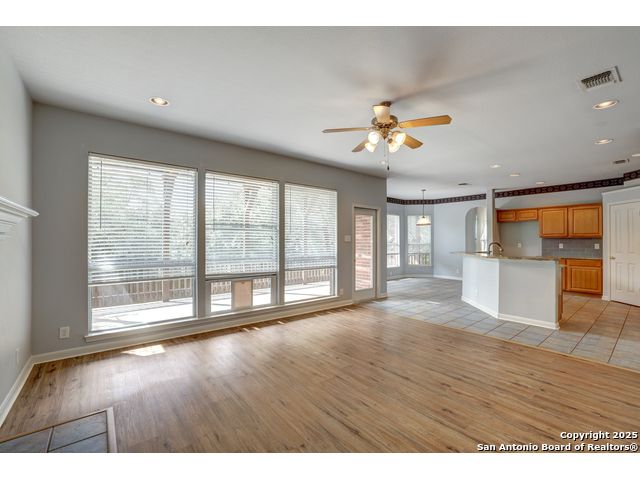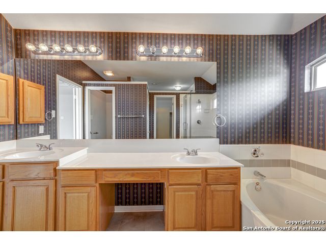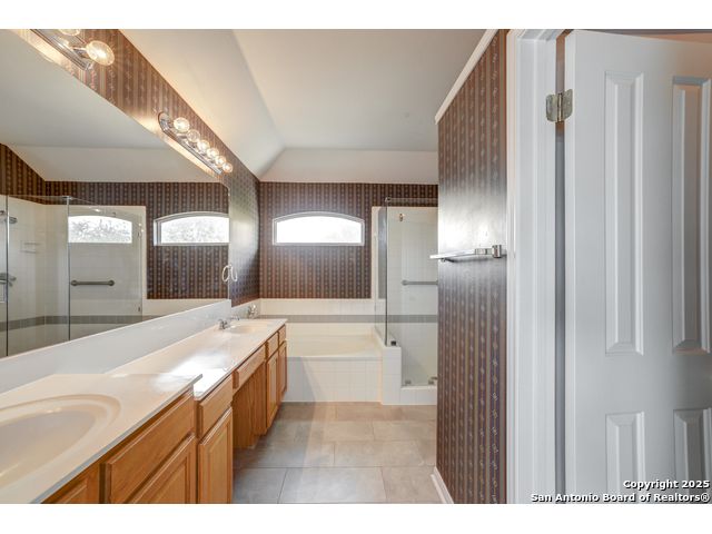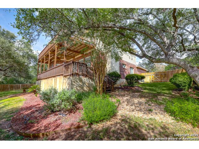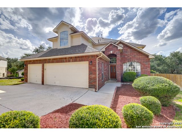 Nestled on a serene 1/3-acre secluded greenbelt lot, this immaculate one-owner custom home offers a large interior space on a large lot in one of the area's most sought-after neighborhoods. With 4 spacious bedrooms, 3 full baths, and a thoughtfully designed two-story layout, this home perfectly balances comfort and space. Step inside to discover a well-maintained interior with some tasteful updates, showcasing pride of ownership in every room. The heart of the home features an inviting living space that flows effortlessly into the kitchen and dining areas, ideal for both everyday living and entertaining. Upstairs, the huge primary suite sits next to a game room with a large private balcony, the perfect spot to enjoy the oversized cul-de-sac lot and peaceful greenbelt views. Downstairs, the grand covered patio is made for gatherings, grilling, or simply relaxing in your backyard retreat with no rear neighbors. Additional features include a 3-car garage, mature landscaping, and plenty of room to add a pool or garden. The Vineyard offers access to a community pool, sports courts, playground, and NEISD schools. Don't miss this private gem with space to grow and room to breathe.