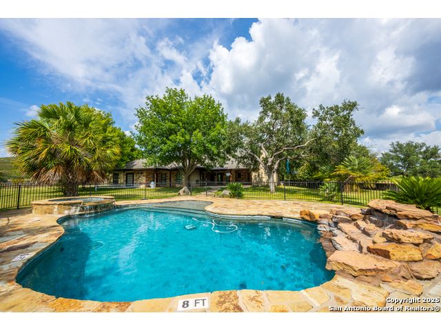 Stunning 10-acre Estate minutes from Concan and the Frio River. Welcome to your dream retreat on the edge of the scenic Texas Hill Country and South Texas! This breathtaking property offers a blend of privacy, luxury, and country living. Enter through a gated entrance off paved Texas Highway 127 to discover a custom-built home, constructed in 2008, offering 4,924 sq. ft. of living space per UCAD. Designed for both comfort and entertaining, this spacious residence features 5 bedrooms, 4.5 bathrooms, 3 fireplaces, a light-filled open-concept kitchen and living area, a formal dining room, a home gym/office, and an expansive upstairs party room. The primary bedroom is a luxurious retreat, with two spacious cedar-style walk-in closets, a cozy stone fireplace, and direct access to the covered patio. The en-suite bathroom offers dual sinks, a soaking tub, and a walk-in shower for a spa-like experience. All appliances in the kitchen are to stay including a gas stove with oven, refrigerator, dishwasher and ice maker. Outdoor enthusiasts will love the expansive covered patio perfect for outdoor living, along with a stunning fenced-in pool featuring a hot tub and waterfall. There is a 2-car attached garage, which includes 2 large storage closets for added convenience. Craftsmanship is evident throughout the home, from elegant wood floors and Saltillo tile to stone fireplaces that create a warm, inviting ambiance. The backyard is cedar-fenced and includes a separate fenced dog run-perfect for pet lovers. Additional highlights include a 1,200 sq ft barn with water and electricity, ideal for livestock, hobbies or storage for equipment. The sellers drilled a new water well in 2024 which includes a 1 1/2 hp pump ensuring a reliable water source. The entire 10-acre parcel is fully fenced and subject to minimal restrictions. Whether you're looking for a full-time residence, vacation home, or an investment property with potential for rental income, this estate offers unmatched value and versatility. Schedule your private viewing and experience Hill Country living at its finest.