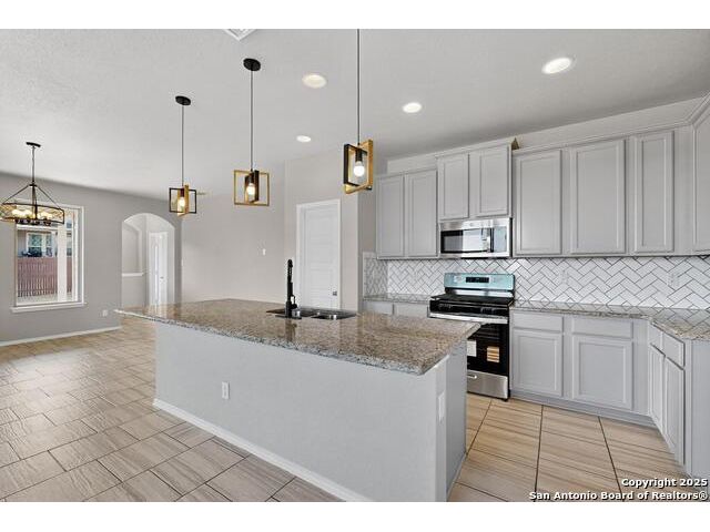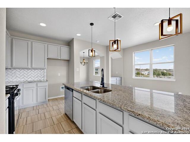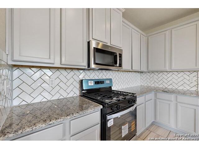 Welcome home to your stunning 5-bedroom, 3.5-bathroom, 2-story home located in the desirable Texas Research Park that is ready move-in on a large corner lot! Multiple living and dining areas with tile flooring and a flex room could be office/formal dining area in the front. Floorplan also includes game-room and a media room!! Kitchen has generous granite counter space, gas cooking, beautiful gray cabinets, and tiled backsplash. The primary bedroom is downstairs includes a generously sized walk-in closet, double sinks in the vanity, separate tub and shower. Four additional bedrooms upstairs with two full bath, game room & media room. Relax and enjoy living outdoors under a covered patio and extra spacious backyard. Updates/Upgrades also include new light & plumbing fixtures, recent paint, door hardware & ceiling fans. Don't miss this one and schedule your showing today! Conveniently located with easy access to major highways, shopping, restaurants, and Lackland Air Force Base and Northside School. This home offers both a peaceful retreat and easy access to everything you need. Ready for immediate move-in, this home truly combines style, function, and efficiency. Come by and make it yours!