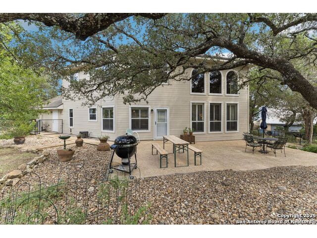 ***OPEN House Saturday 11/16 2-4. Gift card giveaway, refreshments will be offered. Beautiful, spacious home perched high above the rest, surrounded by mature oak, cedar elm, and cedar trees on a generous 1.3-acre lot. This is not your typical postage-stamp lot - there's room to grow your dreams and family, or to simply retire to the country and unwind. Nestled in a well-established neighborhood amid the woods, this property offers true Hill Country living with abundant wildlife, yet remains conveniently close to both Boerne and San Antonio. The stunning residence showcases cathedral ceilings, freshly painted interior and exterior, updated lighting and fixtures, hardwood in primary bedroom, blinds, mirrors and countless thoughtful upgrades throughout. The natural native stone exterior enhances the home's beauty, complemented by a winding driveway that welcomes you home with serene Hill Country views.Entertain with ease and relax in style in your gourmet kitchen featuring a gas cooktop, open layout, and seamless flow into the living area. Gather around the striking stone fireplace for cozy evenings with family or friends. Enjoy peaceful mornings and evenings from your outdoor spaces, surrounded by nature and tranquility. Recent improvements include a new water softener, commodes, shutters, and other meticulous updates that reflect pride of ownership. Located in the highly sought-after Boerne ISD, rated among the best in Texas, this home offers not just a beautiful setting but also exceptional schools. Don't miss this opportunity to own a home designed for comfort, relaxation, and peace of mind - a true Hill Country gem ready for its next chapter.