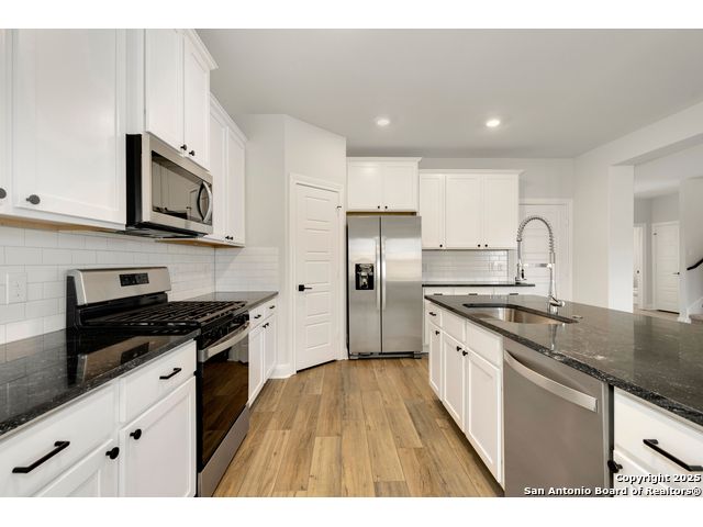 Boasting incredible curb appeal and included upgrades, this two-story home is simply stunning. On the main floor you will find an open layout with large windows, making this space feel airy and bright. The beautiful kitchen comes complete with stainless steel appliances, glimmering granite countertops and oversized wood cabinetry. Upstairs are the four generously sized bedrooms, with the master suite offering an incredible, spa-like master bath. In addition, this home comes with covered outdoor spaces, a fully fenced back yard and professional front yard landscaping.
