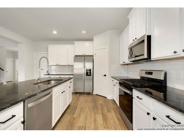 Boasting incredible curb appeal and included upgrades, this two-story home is simply stunning. On the main floor you will find an open layout with large windows, making this space feel airy and bright. The beautiful kitchen comes complete with stainless steel appliances, glimmering granite countertops and oversized wood cabinetry. Upstairs are the four generously sized bedrooms, with the master suite offering an incredible, spa-like master bath. In addition, this home comes with covered outdoor spaces, a fully fenced back yard and professional front yard landscaping.
