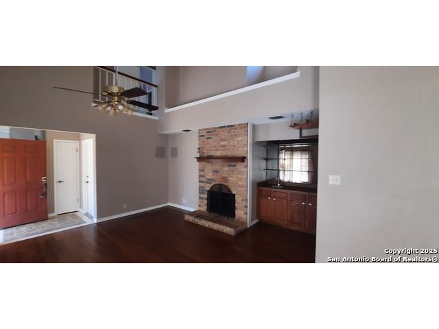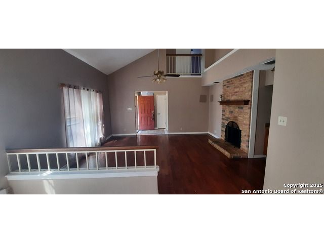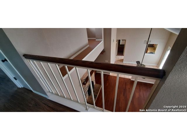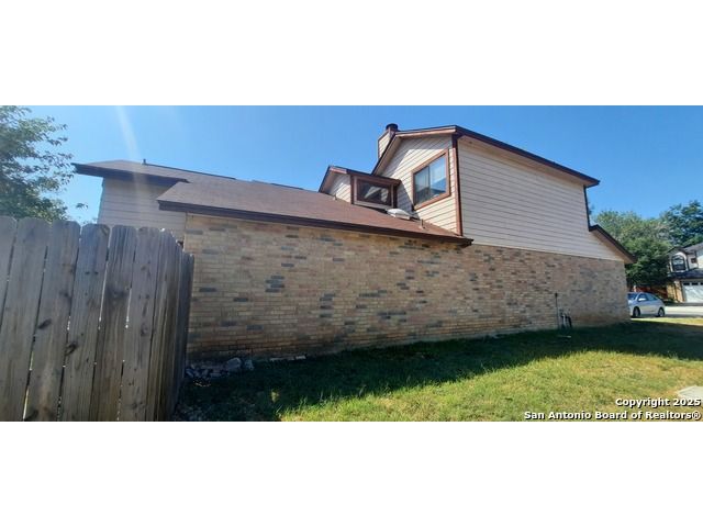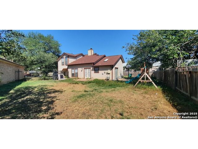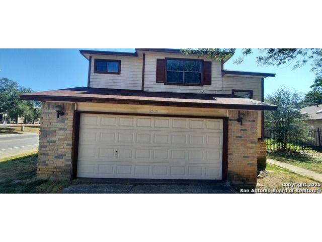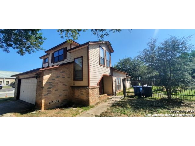 Nice 3 bedroom 2 1/2 bath home with 2 car garage on a large corner lot right across from the elementary school. **Northside ISD schools** Great neighborhood with amenities that include a pool, tennis court, basketball court and playground. Walk into the big open living area with fireplace and wet bar. Wood laminate flooring in living area and upstairs The master bedroom and bath are down and has access to the large backyard. Upstairs is open to the downstairs living area and has 2 nice sized bedrooms with newly remodeled bathroom and new flooring and paint throughout the upstairs. ** AC recently replaced** Loads of potential!