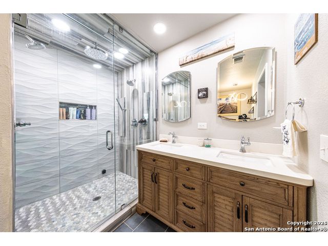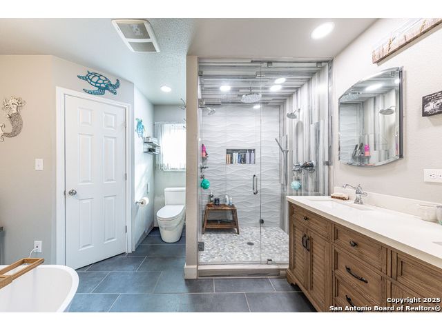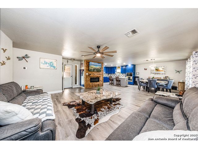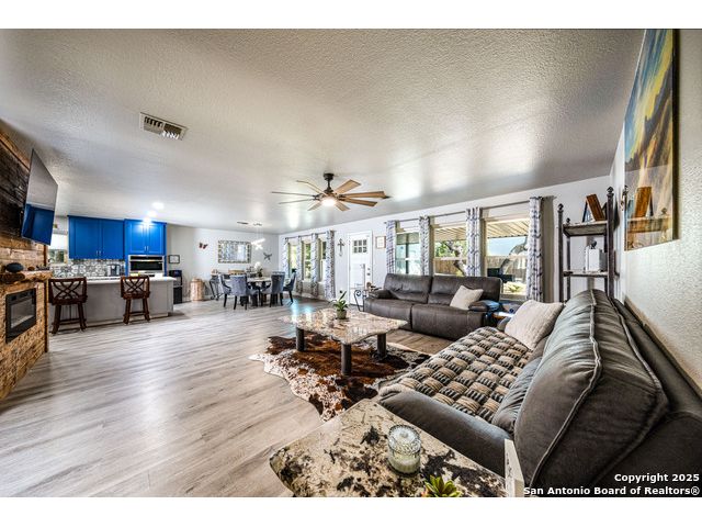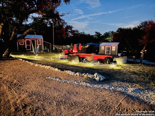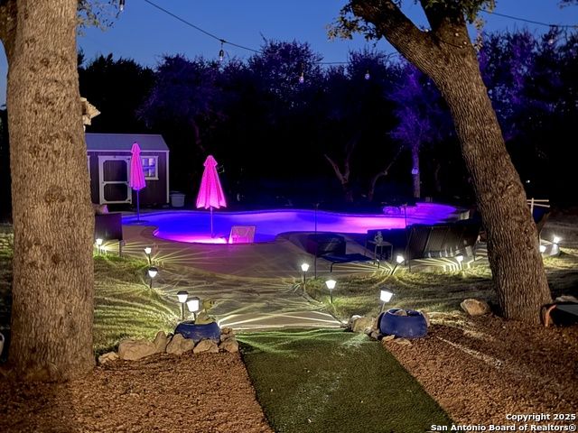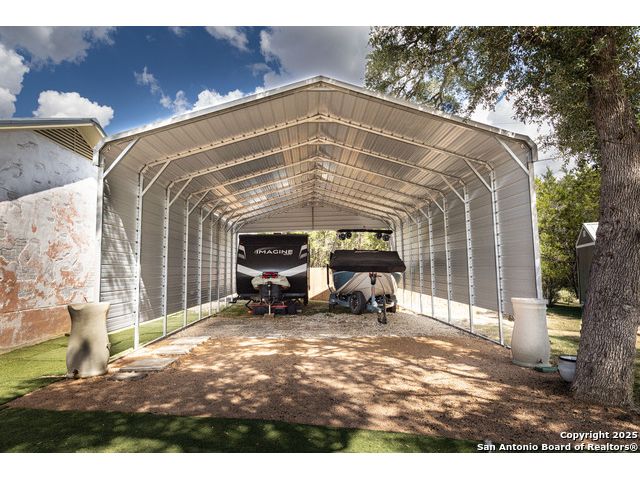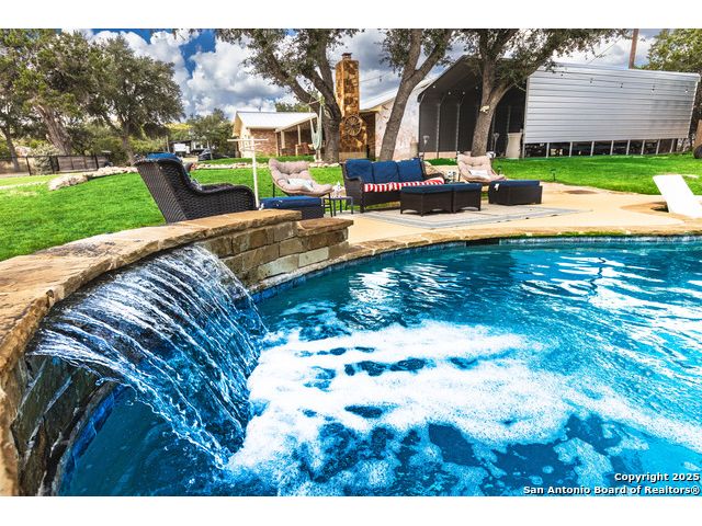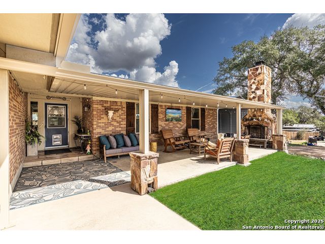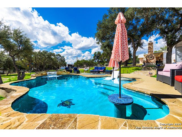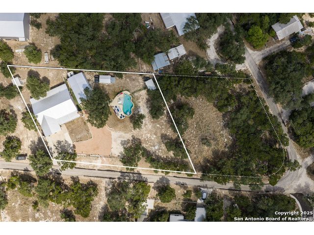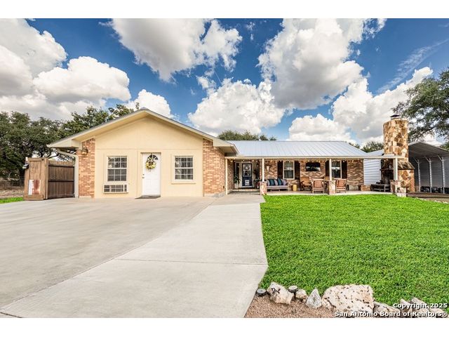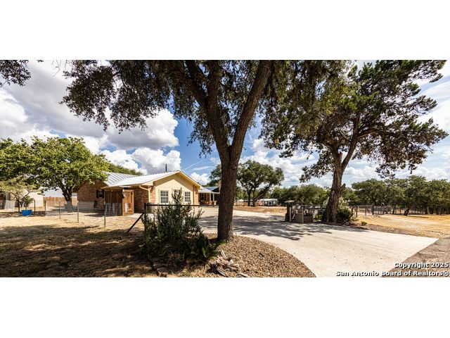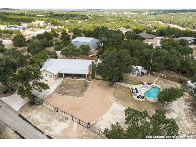 This stunning home truly has it all! Featuring 3 bedrooms and 2 bathrooms, measuring at 2020 sqft. It also boasts an office space that can easily serve as a 4th bedroom, complete with thoughtfully designed shelving. Step inside to find an inviting open concept layout that includes a high-end kitchen, equipped with modern stainless steel appliances and a spacious kitchen island featuring an induction stove. Recently remodeled just over four years ago, this home exudes contemporary charm. The master bedroom is a true retreat, offering a luxurious bathroom complete with a soaking tub and a full steam shower. All plumbing has been upgraded to Pex, and Ethernet drops are strategically placed throughout the home for added convenience. Cozy up by one of the two fireplaces, with an electric one inside and a wood-burning option on the patio. Outdoor living is elevated with two expansive covered patios, leading to a spectacular inground pool. The property also includes a large RV carport with its own near by electric meter and cleanout, perfect for accommodating your vehicles and recreational toys. Canyon Lake Boat Ramp 23 is just 5 min away. Don't overlook the three spacious storage buildings, one of which houses the private well. The entire property is completely fenced, featuring two automatic gates, and there are no HOA or ACC restrictions to contend with. All new windows and metal roof added in 2024. As an added option, the adjacent lot is also available for purchase by another owner, presenting an exciting opportunity to expand this already enchanting oasis.