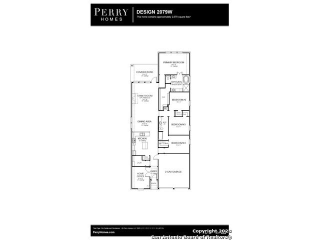 Entry framed by home office with French door entry. Kitchen with center island, 5-burner gas cooktop and walk-in pantry. Dining area flows into the family room with a wall of windows. Private primary bedroom with wall of windows. French doors lead to dual vanities, garden tub, separate glass enclosed shower, and walk-in closet in the primary bath. Secondary bedrooms all offer a walk-in closet. Covered backyard patio. Utility room just off the two-car garage.