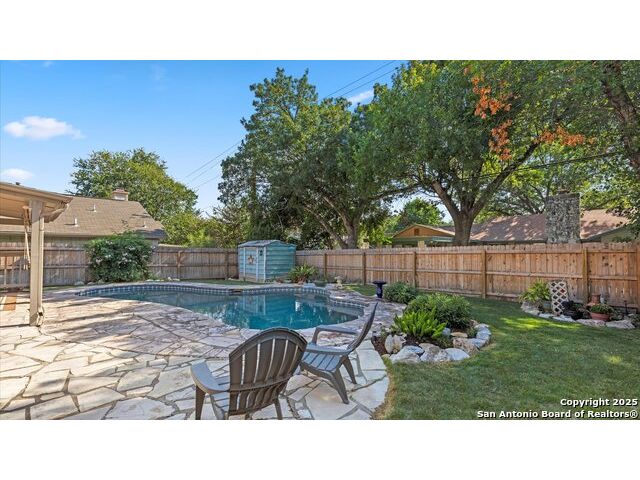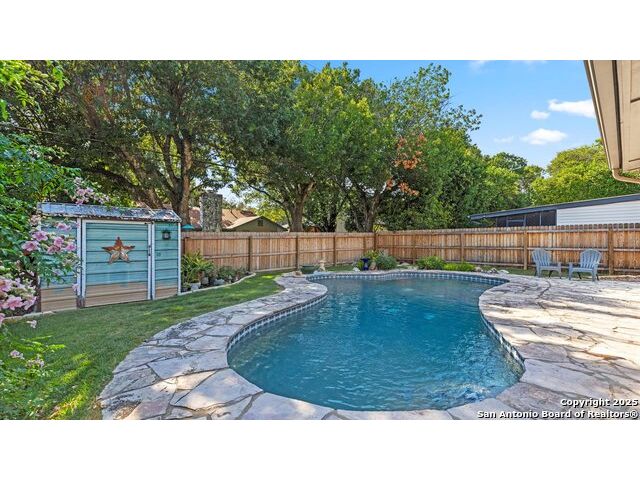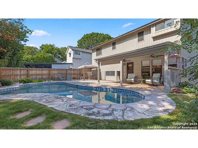 Welcome to this beautifully maintained 3-bedroom, 2.5-bath home tucked away in the established Oak Hollow Village neighborhood, just down from McAllister Park and conveniently situated between Jones Maltsberger and Highway 281. Step inside to find a bright and inviting space featuring tile and laminate flooring throughout, a beautifully upgraded master bath, and a layout designed for comfort and everyday living. This home has been lovingly cared for with numerous recent upgrades, including a newer roof, water heater, and dishwasher. The HVAC system is just 2 years old, the siding is brand new, and the backyard features a new fence-offering peace of mind for years to come. Step outside to your private backyard oasis featuring an in-ground pool surrounded by flagstone-perfect for relaxing or entertaining family and friends. Additional touches include a refrigerator that stays with the home, making it move-in ready. Thoughtful updates, pride of ownership, and modern comfort come together seamlessly in this charming Oak Hollow Village gem.