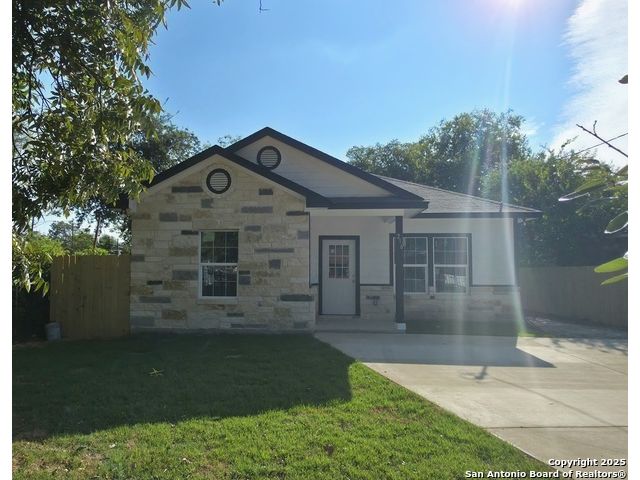Newly Built Home on the West Side! Step into modern comfort with this stunning newly constructed 3-bedroom, 2-bath home located in the heart of the city's vibrant west side. It features a natural stone front exterior. Inside, you'll be greeted by high ceilings and beautifully crafted coffered designs in both the spacious living area and the serene primary bedroom. Luxury vinyl plank flooring flows seamlessly throughout the home, complementing the upgraded fixtures and finishes. The kitchen features granite countertops and premium fixtures that blend style with functionality. Both bathrooms are thoughtfully design with modern touches. Back exterior includes a wood privacy fence and a wrought iron gate for added security. Just one block from shopping and dining, this location offers unbeatable convenience for everyday living.