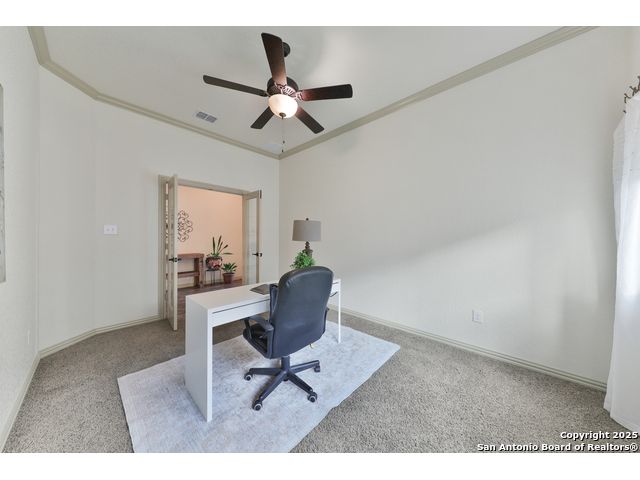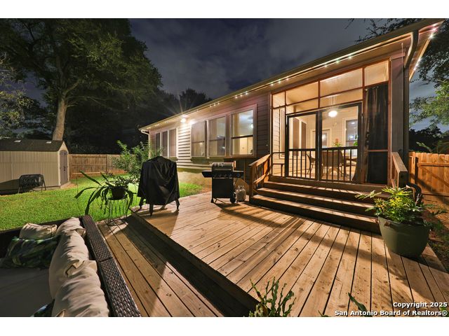 OPEN HOUSE: Sunday, December 7th, 2-5PM! Welcome to this stunning 4-bedroom, 3-bath David Weekley 1-story home offering 2,706 sq. ft. in the desirable gated community of Triana with access to a pool and park. Meticulously maintained and upgraded for modern comfort and energy efficiency. Enjoy 12,000-watt paid-off solar panels, solar screens, and a NEW 16 SEER Trane AC and furnace (2022). A new roof was added in 2020, along with a new water heater (2019) and water softener (2021). Custom exterior lighting, adding peace of mind and curb appeal. Inside, the open-concept layout is perfect for both everyday living and entertaining. The spacious kitchen flows seamlessly into the living area, creating a warm and inviting space for gatherings. The generous owner's suite is a true retreat, featuring a garden tub, separate shower, and plenty of room to relax and unwind. Additional bedrooms offer flexible space for guests or family and the home features a private office-perfect for working from home. Step outside to your private backyard oasis complete with a sunroom, multi-level, wood deck, privacy fence, and mature trees-ideal for relaxing or entertaining outdoors. The home's attractive 3-sides brick and stone exterior is complemented by a three-car tandem garage, with the third bay converted into a versatile storage space-perfect as a man cave, workshop, or additional storage area. With modern upgrades, stylish finishes, and access to premium community amenities, this home truly has it all. Outdoor shed conveys with the home. Don't miss the opportunity to make it yours!