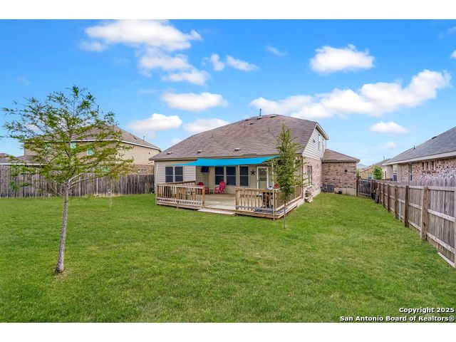 Discover this beautiful 2023 home nestled in the highly desired Hidden Trails community! Designed with modern living in mind, this spacious home features 5 bedrooms, a dedicated home office, and a cozy loft, providing plenty of space for work, play, and relaxation. The open-concept floor plan seamlessly connects the bright living area and the chef-inspired kitchen, complete with a large island, Energy Star appliances, and generous cabinetry & walk-in pantry. Natural light fills every corner, creating a warm and welcoming atmosphere. Retreat to the luxurious primary suite, where you'll find dual vanities, a walk-in shower, and a roomy walk-in closet, your own private escape at the end of the day. Step outside to enjoy the inviting back patio and expansive backyard deck, perfect for gatherings or quiet mornings with coffee. The three-car garage offers ample storage and parking space, while energy-efficient features throughout the home help keep costs low and comfort high. As part of the Hidden Trails community, you'll have access to amazing amenities, including a sparkling pool, 24/7 fitness center, scenic walking trails, a catch-and-release pond, and a full calendar of neighborhood events. Located within Comal ISD, this home offers not just a beautiful space to live but an incredible lifestyle!