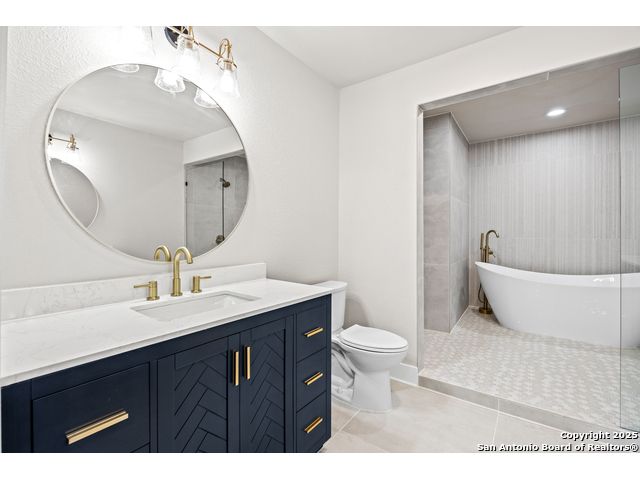 Welcome to this beautifully fully renovated 4-bedroom, 2.5-bath home located in the highly desirable Terrell Hills community! This home offers the perfect blend of modern comfort and classic charm, featuring fresh paint, brand new electrical and plumbing throughout, a new water heater, and a complete HVAC system for year-round efficiency and peace of mind. Step inside to discover a bright open-concept layout with stylish finishes, modern vanities and fixtures in every room. The primary bath showcases a luxurious wet room with a free-standing tub and shower combo, creating a spa-like retreat. Kitchen shines with brand new stainless steel appliances-all included with the home, along with new stackable washer and dryer. Enjoy the outdoors with 2 new decks , new privacy fence surrounding the spacious yard. The property sits less than a block from a charming neighborhood park, perfect for walks, playtime, or relaxing evenings. Conveniently located near Loop 410, IH-35, and Highway 281, this home provides easy access to shopping, dining, and entertainment. Don't miss this incredible opportunity to own a fully renovated move-in-ready home in one of San Antonio's most sought-after communities-Terrell Hills.