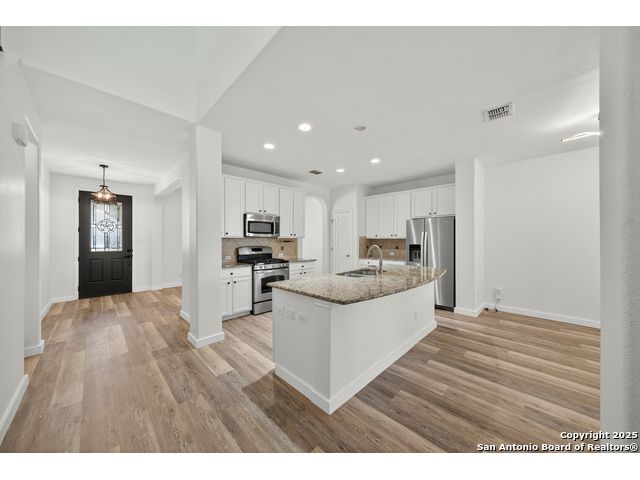 Welcome to 6511 Diego Lane - Move-In Ready in the Heart of Alamo Ranch! Experience comfort, style, and convenience in this beautifully updated 4-bedroom, 2.5-bath home offering 2,524 sq. ft. of thoughtfully designed living space in one of San Antonio's most desirable communities. From the moment you step inside, you'll notice the brand-new Luxury Vinyl Plank and plush carpet flooring, a fresh coat of paint, and an open layout filled with natural light that instantly feels like home. The spacious kitchen features gas cooking and overlooks a bright living area-perfect for family gatherings or entertaining guests. Upstairs, you'll find a very large game room ideal for movie nights, a play area, or a secondary lounge space. The home also includes a dedicated media room pre-wired for surround sound, offering endless possibilities-it can easily serve as a bedroom, office, flex space, or private retreat to fit your lifestyle. Step outside to enjoy the covered patio, perfect for BBQs and relaxing evenings under the Texas sky. With a two-car garage, plenty of storage, and a recently cleaned and serviced HVAC system, this home is truly move-in ready with peace of mind built in. Located in Alamo Ranch, you'll enjoy access to top-notch community amenities-pools, parks, walking trails, and sports courts-along with proximity to major shopping, dining, and top-rated Northside ISD schools. Plus, you're just minutes from major thoroughfares for an easy commute anywhere in the city. Beautifully updated, freshly serviced, and packed with flexible living spaces-this Alamo Ranch gem has it all! Don't miss this neighborhood gem!!