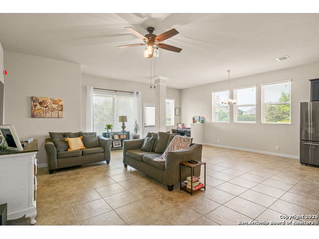 Priced $75,000 below 2025 Bexar county appraised value! This beautifully maintained single-story home offers one of the best price points in the area in recent years. Featuring a spacious and open floor plan, the layout is thoughtfully designed with the primary suite positioned separately from the secondary bedrooms for enhanced privacy. The kitchen is a true centerpiece, boasting an expansive island, abundant cabinetry, and modern electric appliances-plus a gas line already in place behind the stove for those who prefer gas cooking. Working from home? This home has a spacious office just for you!!!