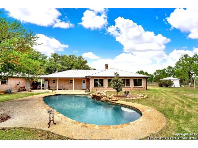 Your Texas retreat awaits on 16+ beautiful acres in historic Saint Hedwig! Just minutes from San Antonio, this small-town was founded by Polish and German settlers in the 1850s and is still known for its peaceful countryside and strong sense of community. Escape to country living at 3190 Pittman Rd, featuring a gated entry, spacious 3 bed / 2 bath home with cathedral ceilings and a cozy fireplace, and sun room. Enjoy your private pool, deck, and open-air living surrounded by mature trees and leveled land. A barn, workshop, and cross-fenced pastures make this property ideal for horses, cattle, hobbies, or home-based ventures. Motivated seller - come live where heritage meets wide-open Texas skies!