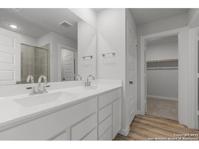 The Rudy at Spring Creek offers two stories of well-designed living space. The first level features an open-concept great room seamlessly connected to the dining area and kitchen equipped with a corner walk-in pantry and a center island. Additionally, a convenient powder room can be found on the main level. Upstairs, a spacious primary suite's en-suite bathroom offers privacy and functionality with a dual-sink vanity and an expansive walk-in closet. Three secondary bedrooms, also located on the second floor, share a full bathroom. A full laundry room and 2-bay garage complete the space. Additional home highlights and upgrades: 36" kitchen cabinets, quartz countertops and backsplash Luxury wood-look vinyl plank flooring in common areas Stainless-steel appliances Soft water loop upgrade Additional recessed lighting throughout home Garage door opener with two remotes Landscape package with sprinkler system Exceptional included features, such as our Century Home Connect smart home package and more!