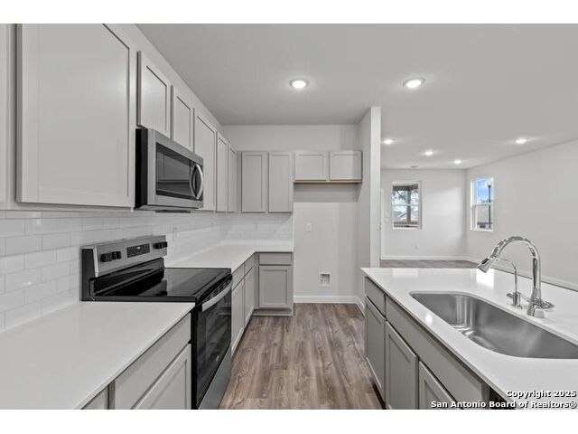 Introducing the Frederick at Spring Creek: a 2,260-square-foot haven that blends functionality with modern living. This two-story home invites gatherings in its first-floor, open-concept great room, home to a living room, dinig area, and a well-equipped kitchen complete with a walk-in pantry and a center island. The owner's suite is nearby, offering a large walk-in closet and a private bath with dual vanities. Upstairs, an open loft adds to the home's spacious feel. Three additional bedrooms and a full bathroom round out the plan. Additional home highlights and upgrades: 36" white kitchen cabinets, quartz countertops and backsplash Luxury wood-look vinyl plank flooring in common areas Stainless-steel appliances Soft water loop upgrade Additional recessed lighting throughout home Covered patio Garage door opener with two remotes Landscape package with sprinkler system Exceptional included features, such as our Century Home Connect smart home package and more!