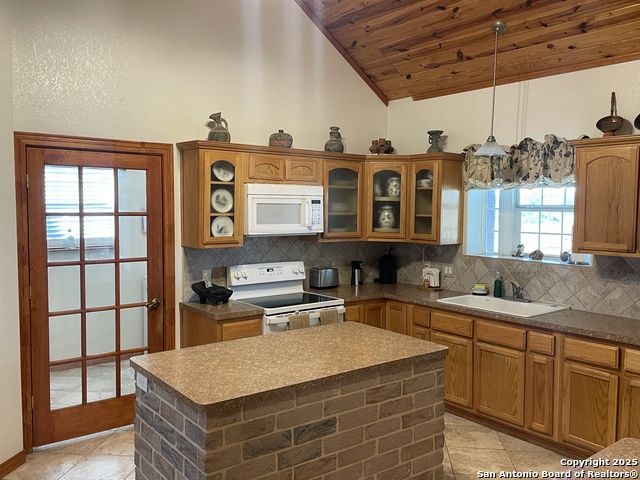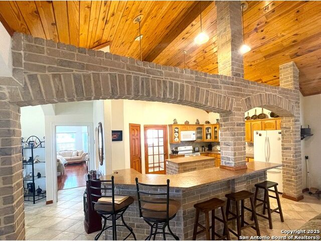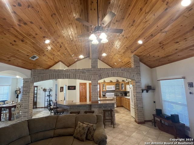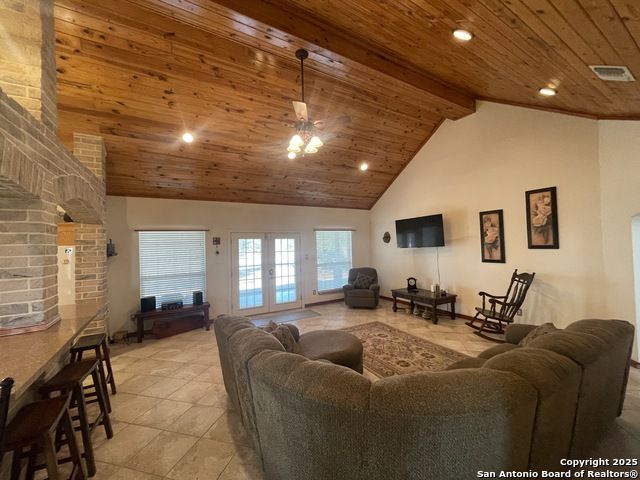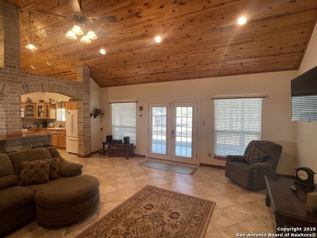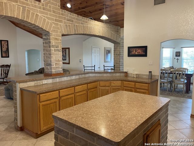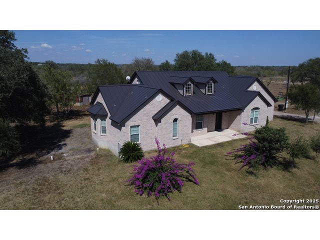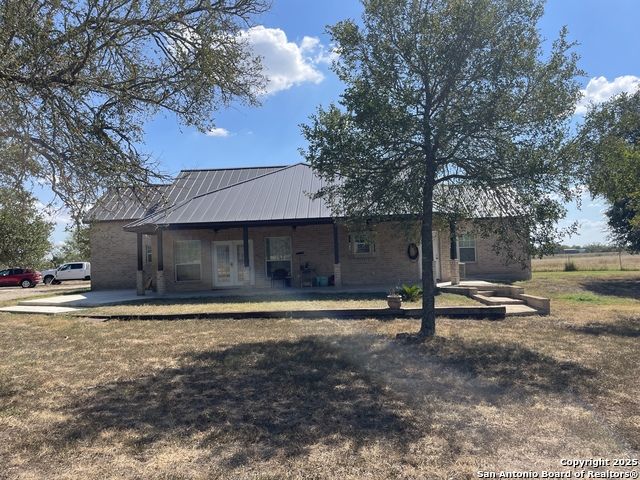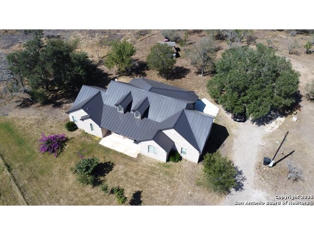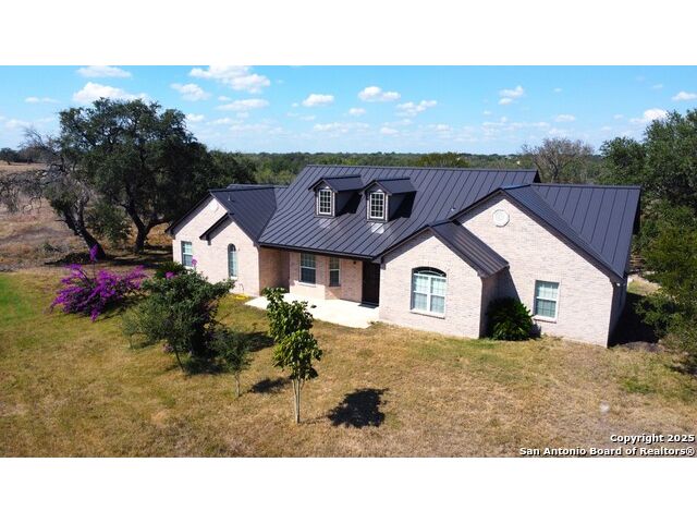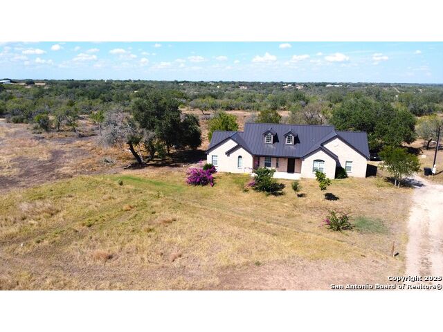 Beautiful custom built Home on 20 Ag Exempt acres in Medina County between Castroville and Hondo (Dunley area). The Home features 3BR/3BA, 2351 s.f. of living area, large living room and kitchen, unique vaulted ceilings, brick laid arches between kitchen an living room, large master suit with walk in closet. The second bedroom has its own attached full bath. Several large Live Oak trees around the house and storage building with electric service in back yard. There is a metal equipment barn for tool/tractor storage. The majority of the 20 acres is in improved grasses (Coastal Bermuda) - excellent for cattle or horses with some brush cover also. Hunting opportunities for whitetail deer. The entire property is fenced. Water is provided through East Medina Water District.
