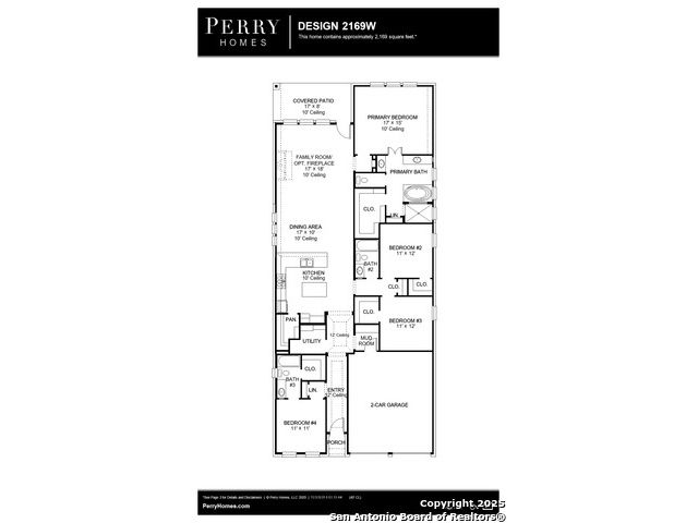 Extended entry with 12-foot ceiling leads to open kitchen, dining area and family room with 10-foot ceilings throughout. Kitchen features center island with built-in seating, 5-burner gas cooktop. Family room features wall of windows. Primary suite with 10-foot ceiling and wall of windows. Dual vanities, garden tub, separate glass-enclosed shower and large walk-in closet in primary bath. A guest suite with private bath adds to this four-bedroom home. Covered backyard patio. Mud room off two-car garage.