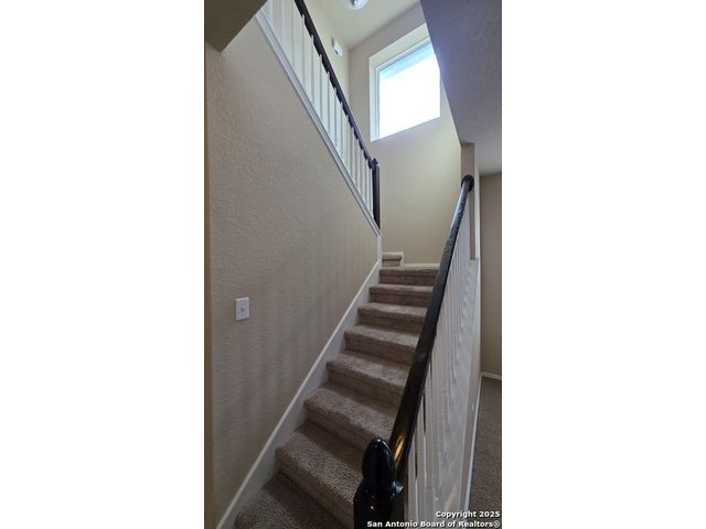Seller is providing a 1st American homeowner's warranty to the buyer. Beautiful Two story home with hard to find C elevation that includes a covered front porch and a private balcony off of an upstairs bedroom/lounge. Located on the growing far West Side of San Antonio Texas! Freshly painted interior. Pre-inspected with licensed third party inspector. Report available on request. 4 bedrooms 2.5 bathrooms plus a dedicated office on a cozy lot with mature trees and landscaping. Top level neighborhood amenities, multiple pools, community parks, walking trails, tennis, basketball, picnic areas and more. Walking distance to elementary School. Step inside the home and you're immediately greeted by a expansive open floor plan with just installed carpet downstairs. Ceramic tile throughout downstairs with carpet only in the bedrooms and hall closet. Efficient kitchen with gas cooking. Open living room with ceiling fan. Ceiling fans also in all bedrooms. Dedicated office or secondary living area near entry. The Master Suite is large enough for a sitting area. Dual vanities, walk in shower and large walk in closet highlight the master bathroom. Upstairs is a large Game-room (Approx. 21X21). Bedroom three has a private balcony that overlooks the front yard. Imagine this room situated off the game-room as a TV lounge a reading room, children's playroom or second office. Home includes water softener. Garage has durable epoxied floor. Nice backyard with covered patio easy care with the in-ground sprinkler system. Easy access to SH 211, FM 1957 (Potranco) HWY 90 and 1604. Close to Air Force bases and the HEB at 211 and Potranco is a few minutes away. Take a short drive to the historic town of Castroville. This home is a must see.