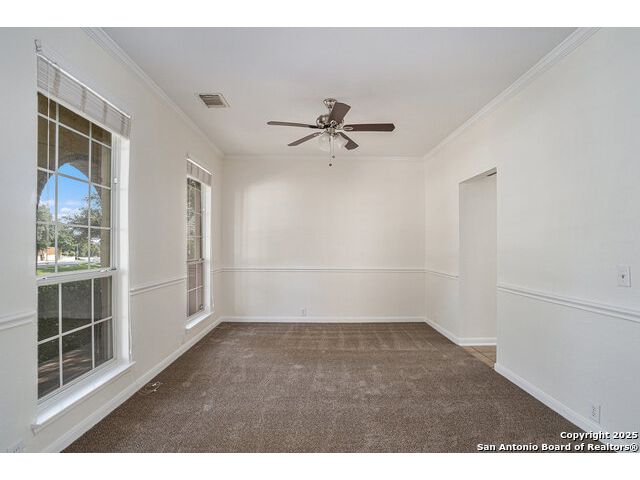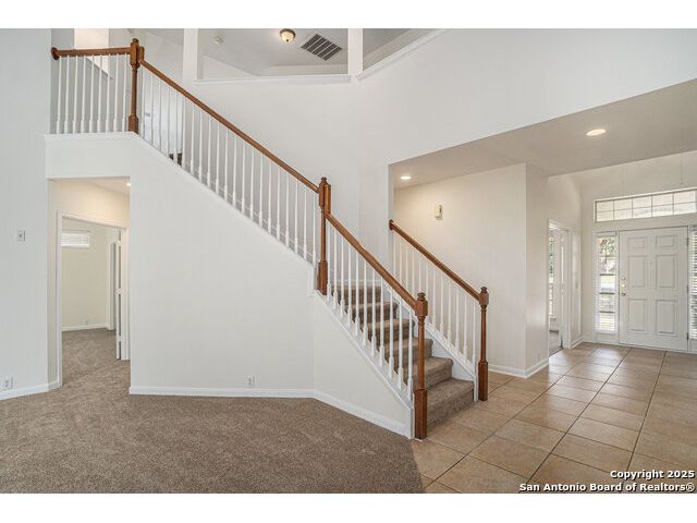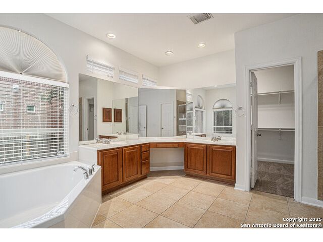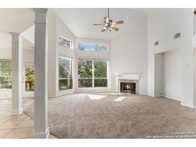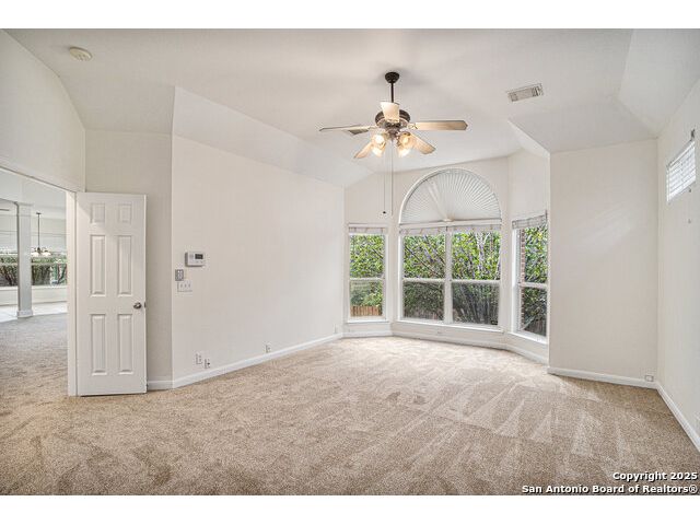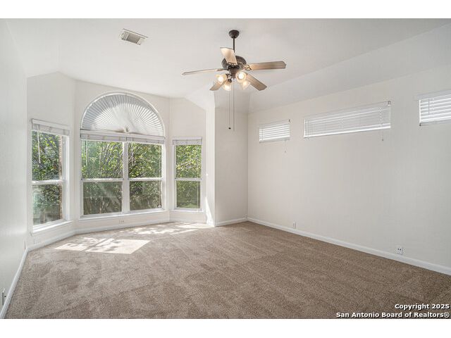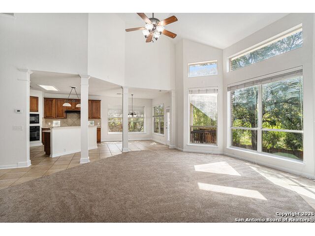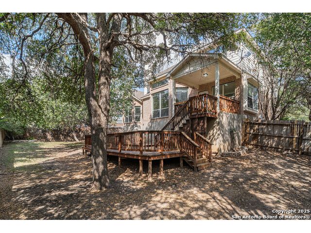 Welcome to this stunning 4-bedroom, 3.5-bathroom gem located in the coveted Iron Mountain Ranch community. Step into the grand two-story foyer, where you'll find the dedicated office to your right and the formal dining room to your left. The main living area is truly impressive with its cathedral ceilings, wood-burning fireplace, and abundant natural light from large windows, creating a grand and inviting atmosphere. The space flows seamlessly into the kitchen, which offers tons of cabinet and counter space, with granite countertops and black appliances. The primary bedroom is a peaceful retreat, featuring large windows and an ensuite with a garden tub and a standing shower. The remaining bedrooms are located upstairs, along with a versatile flex space that is perfect for a media room or play area. Enjoy the outdoors on the large back deck, situated in a fully fenced backyard. Located in a community known for its award-winning schools, this home also offers easy access to 1604 and 281, making commuting and exploring the area a breeze. Schedule your showing today!