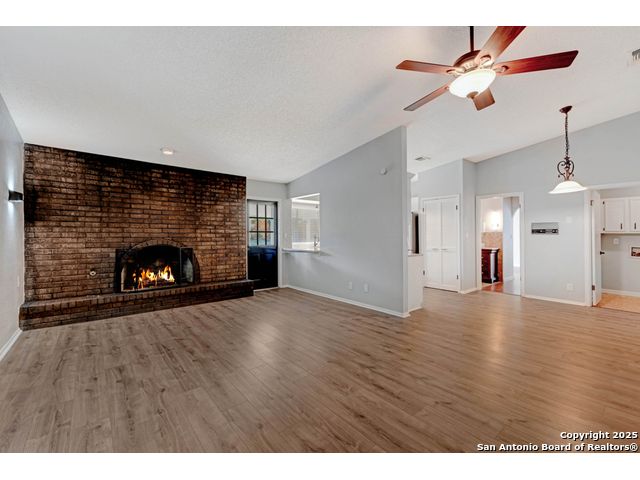 The moment you pull up to 8226 Zodiac, you feel it - that quiet sense of home. The tree-lined street whispers of evening walks and friendly waves from neighbors who've lived here for years. Step inside, and the open flow welcomes you in with sunlight that dances across the laminate floors - no carpet anywhere, just easy living and a touch of modern warmth. The front room catches your eye first - a flexible space that could be a formal dining area, a home office, or that peaceful second living room you've always wanted. Follow the rhythm of the home and you'll find yourself in the heart of it all - the kitchen, dressed in granite countertops and a sleek tile backsplash that sparkles under soft light. It's the kind of space that makes you want to cook slow Sunday breakfasts or gather friends for laughter and late-night conversations. Just beyond, the living area centers around a cozy fireplace, perfect for movie nights or quiet reflection. The home offers four spacious bedrooms and two full baths, giving everyone room to spread out - or to come together when it matters most. Step outside and exhale. The private backyard feels tucked away, ready for morning coffee, backyard barbecues, or simply watching the Texas sky fade into gold. Located in the heart of Universal City, you're just minutes from Randolph AFB, The Forum Shopping Center, Olympia Hills Golf Course, and countless local eateries and parks. With easy access to Loop 1604 and I-35, you're never far from the excitement of San Antonio or the charm of New Braunfels - but always close to the feeling of home. Because 8226 Zodiac isn't just another house. It's a place where your next chapter begins.