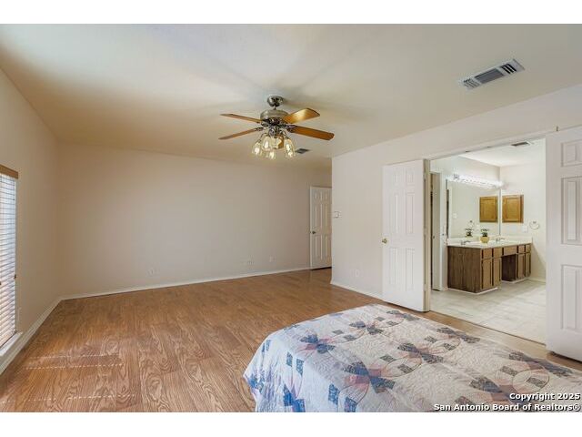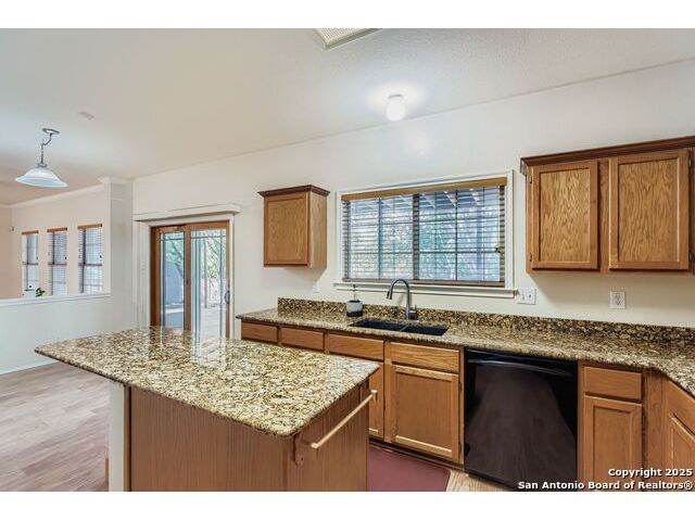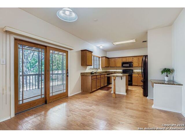 The sounds of the neighborhood fade away the moment you step onto the greenbelt lot at the edge of Spring Creek Forest. Mature trees form a natural screen along the back property line, creating the kind of privacy that turns a backyard into something more valuable - a genuine retreat from the everyday. Inside, laminate wood floors stretch through the main living spaces, establishing visual continuity from the front door through to the kitchen. The kitchen itself anchors daily life with an island that accommodates both morning coffee routines and evening meal prep. Granite counters provide durable work surfaces, while an abundance of cabinetry means finding a home for everything from small appliances to bulk pantry items becomes remarkably straightforward. The refrigerator stays with the home, one less item to coordinate during a move. A custom pine sliding glass door connects the kitchen to the deck, bringing natural light deep into the space while framing views of the tree-lined backyard. The utility room extends beyond basic laundry function with an oversized pantry that transforms grocery storage from a challenge into a non-issue. A water softener protects plumbing and a master whole house water filtration system improves water quality throughout the home. Two sheds with electrical connections stand ready for workshop projects, hobby storage, or the kind of organized garage overflow that keeps vehicles actually parked where they belong. The concrete fence defines property boundaries with permanence, and the in-wall pest control system provides ongoing protection without the drama of quarterly service appointments. The primary suite delivers the kind of bathroom space that changes morning routines from rushed to restorative. A separate tub and shower mean choices - a quick rinse before work or a longer soak on Sunday evening. Dual vanities eliminate the bathroom bottleneck that plagues so many homes, giving each person their own zone for getting ready. Two additional bedrooms and another full bath provide flexible space for family, guests, or the home office that modern work demands, while the half bath on the main level keeps daily traffic flowing smoothly. The elevated deck surveys the backyard from an ideal vantage point, creating an outdoor room that shifts purpose with the seasons - morning coffee spot, summer dinner destination, or simply the best seat for watching the trees mark time through the changing light.