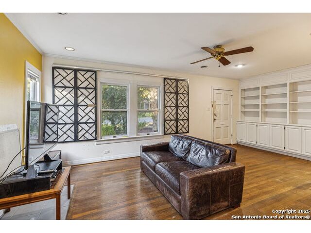 Tucked into one of the most sought-after streets in Alamo Heights, this 2-bedroom, 1.5-bath home offers 1,200 square feet of charm and possibility. Original hardwood floors and vintage details give it character, while the layout and natural light make it easy to envision a fresh, modern update. A sunroom off the dining area adds bonus space, perfect for a home office, reading nook, or creative studio. The one-car garage includes extra storage, and the .16-acre lot offers room to expand or simply enjoy the outdoors. Just a short stroll to Alamo Heights High School, the Little League fields, and the neighborhood dog park, this location delivers on lifestyle and long-term value. Whether you're dreaming of a stylish renovation or a cozy place to call home, this one's worth a closer look.