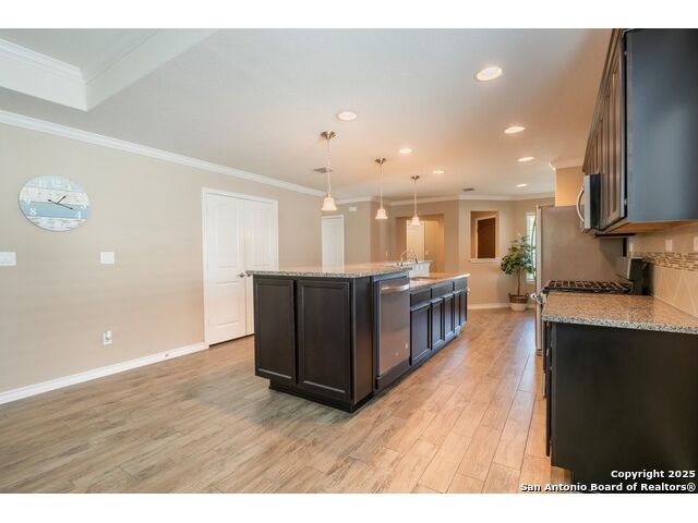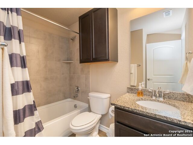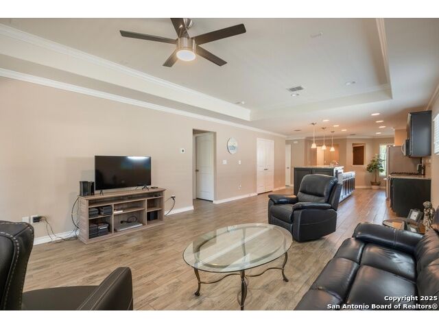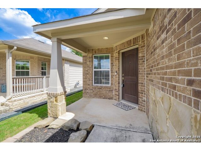 Why pay over 6% on a new mortgage, when you can assume this VA loan at only 2.25% and save yourself thousands of dollars a year on this beautiful single-story 2 bed, 2 bath home in the sought-after 55+ Del Webb community in Alamo Ranch? This 1,434 home features a 2-car attached garage, open layout and elegant details such as a tray ceiling with crown molding in the living room. The kitchen features granite countertops, stainless steel appliances, and a seamless flow for everyday living and entertaining. The primary suite also includes crown molding for added elegance, a walk-in closet, and an ensuite bath with a walk-in shower and dual vanity. Step outside to an inviting outdoor area with a large covered patio and a sprinkler system for easy maintenance. Located in the active Hill Country Retreat 55+ community, residents enjoy exceptional amenities, including a clubhouse, an indoor and outdoor pool, jogging and bike trails, sports courts, and controlled access. The neighborhood features serene landscaping, walking trails, and a resort-style atmosphere - all within close reach of shopping, dining, and city conveniences.