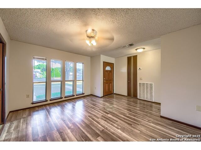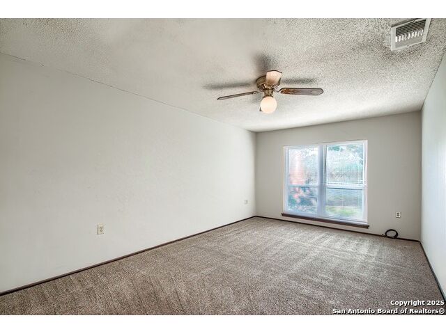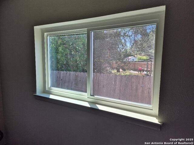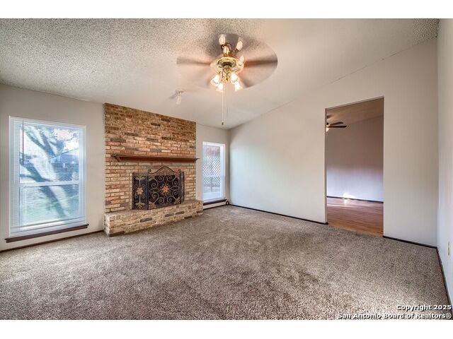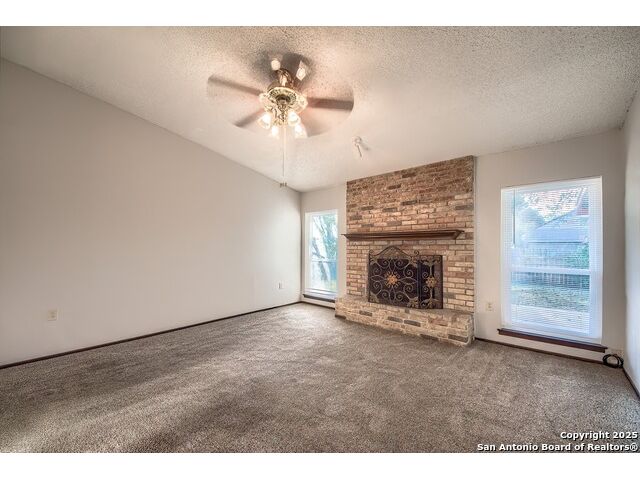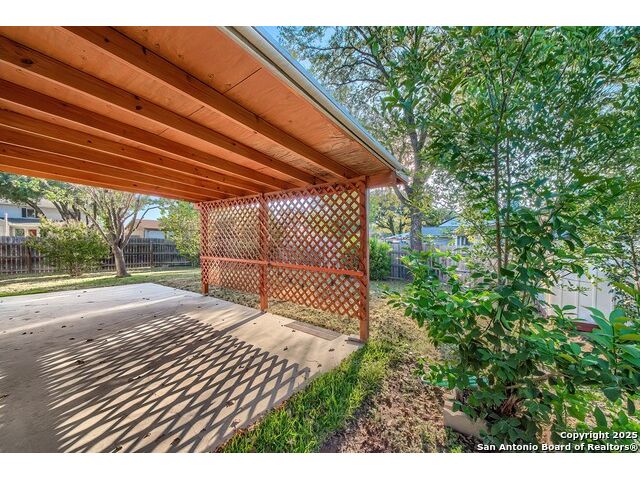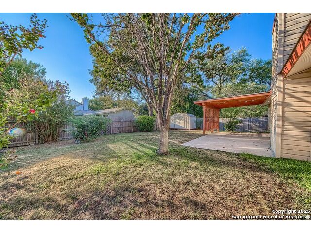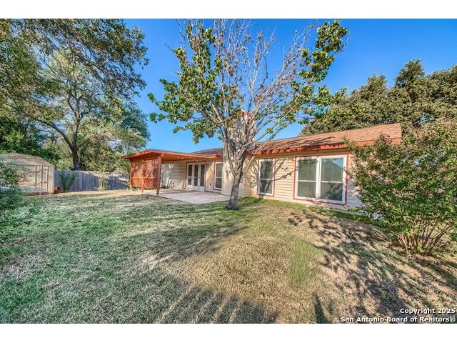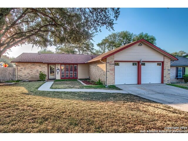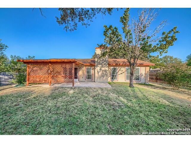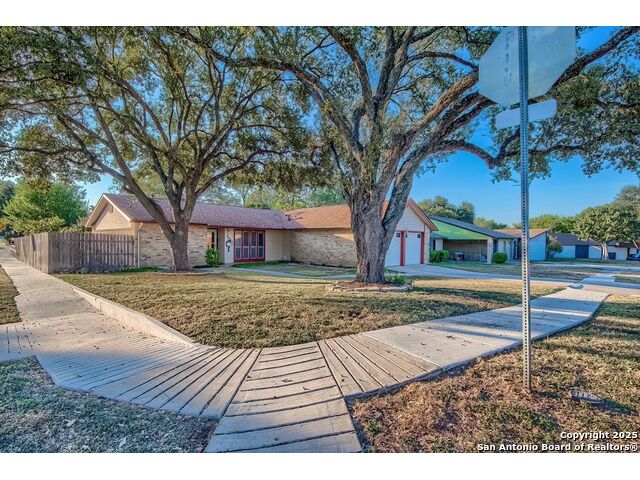 Welcome to Leon Valley! ... and to a beautiful single-story home on attractive corner lot with mature trees, 3 spacious bedrooms, 2 full bathrooms, and a 2-car garage. Recently enhancements include Patio door and all windows upgraded to double pane low E glass units, newer dimensional shingle roofing,newer HVAC system with ultra violet light, newer garage doors. The layout includes a Dining room, a Living room w/fireplace and a separate Family room, providing flexible spaces for entertaining and everyday living. The Kitchen features laminate countertops, all black appliances, Refrigerator,Dishwasher and there's a new Microwave (the Garbage disposal is new as well). The Breakfast bar flows into the Family room, perfect for casual dining or hosting. The Primary suite is generously sized and includes an upgraded accessible bathroom with step in shower,tiled floor and ample walk-in closet. Additional highlights include newer ceiling fans and light fixtures,carpet and laminate flooring throughout, and an abundance of natural light. In the garage is the Washer and Dryer which also remain. Out back is the large concrete patio with the majority of which is covered, mature trees and a storage shed. Located with easy access to major highways, shopping, and dining-and with no HOA, this home offers the perfect combination of comfort and convenience. Schedule your showing today!