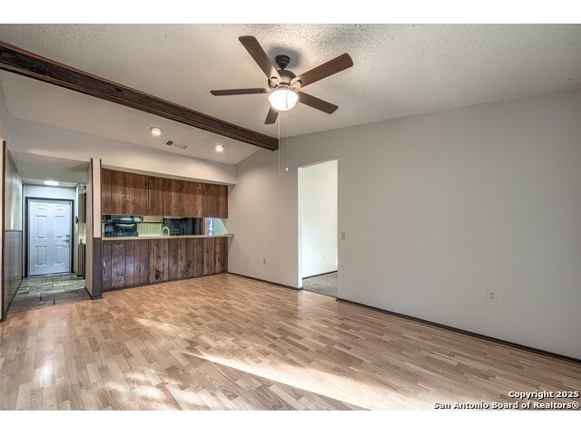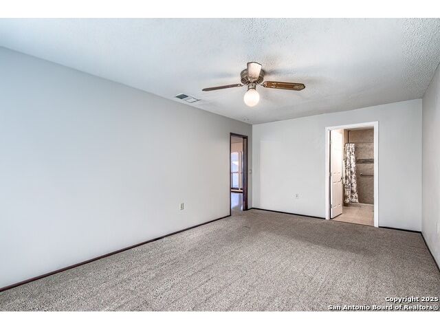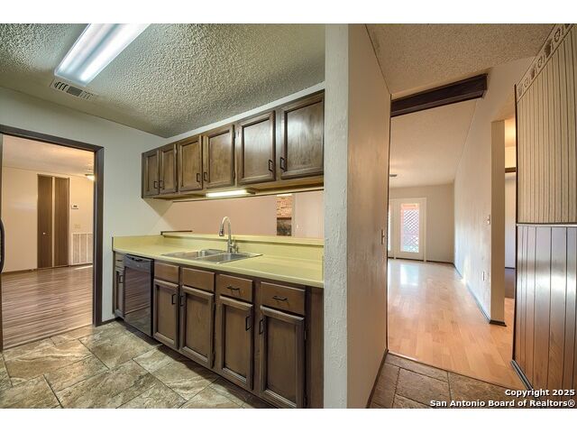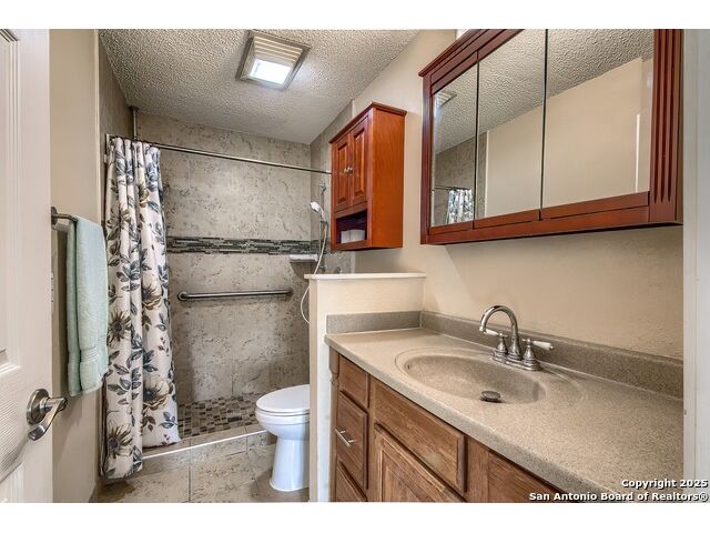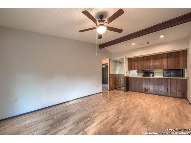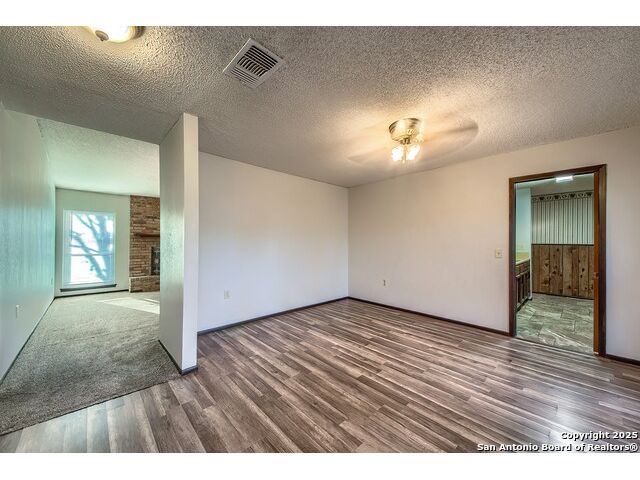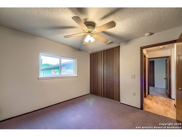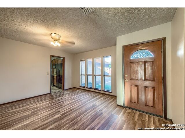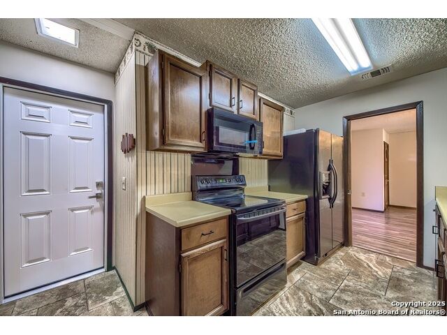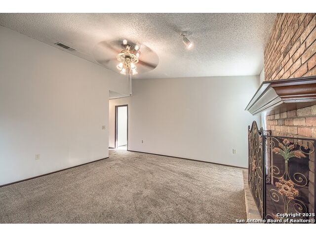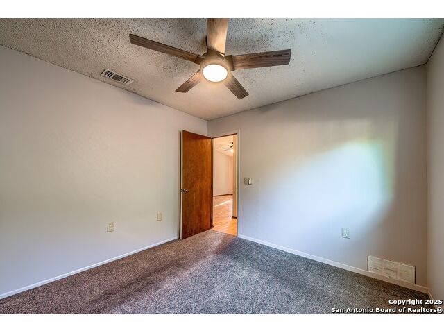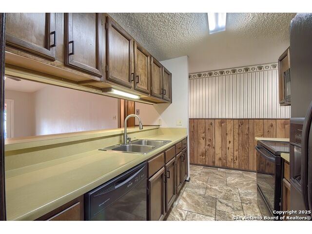 Welcome to Leon Valley! ... and to a beautiful single-story home on attractive corner lot with mature trees, 3 spacious bedrooms, 2 full bathrooms, and a 2-car garage. Recently enhancements include Patio door and all windows upgraded to double pane low E glass units, newer dimensional shingle roofing,newer HVAC system with ultra violet light, newer garage doors. The layout includes a Dining room, a Living room w/fireplace and a separate Family room, providing flexible spaces for entertaining and everyday living. The Kitchen features laminate countertops, all black appliances, Refrigerator,Dishwasher and there's a new Microwave (the Garbage disposal is new as well). The Breakfast bar flows into the Family room, perfect for casual dining or hosting. The Primary suite is generously sized and includes an upgraded accessible bathroom with step in shower,tiled floor and ample walk-in closet. Additional highlights include newer ceiling fans and light fixtures,carpet and laminate flooring throughout, and an abundance of natural light. In the garage is the Washer and Dryer which also remain. Out back is the large concrete patio with the majority of which is covered, mature trees and a storage shed. Located with easy access to major highways, shopping, and dining-and with no HOA, this home offers the perfect combination of comfort and convenience. Schedule your showing today!