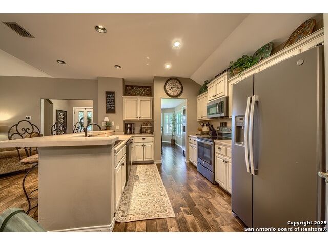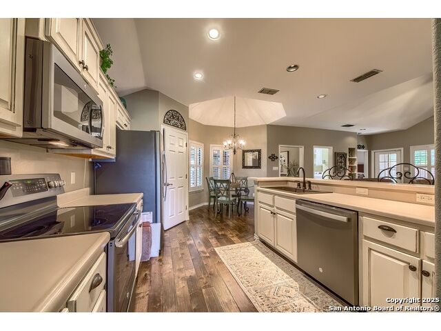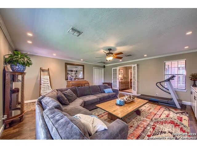 Beautiful Home in quiet, established neighborhood of Hondo. 3BR/2BA, 2382 s.f Home, on corner. Enjoy the open floorplan featuring a spacious Kitchen w/ Bar seating and small dining area that open to the large Living Room. There is a separate Dining Room and large comfortable Den for relaxing. The Master Suite features a full Bath with separate Garden Tub/Shower and walk-in Closet. Step into the back yard and enjoy the beautiful landscaping, shaded areas for grilling or relaxing all behind a recently installed privacy fence. Very nice storage building/work shop in the back yard also. The entire corner lot has been immaculately maintained - entire yard is under automatic sprinkler system.
