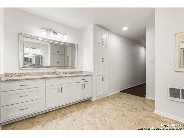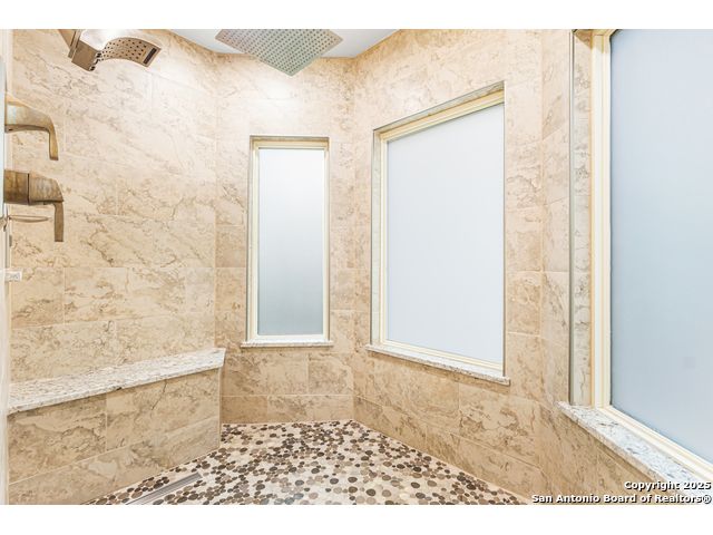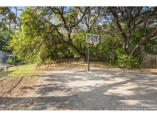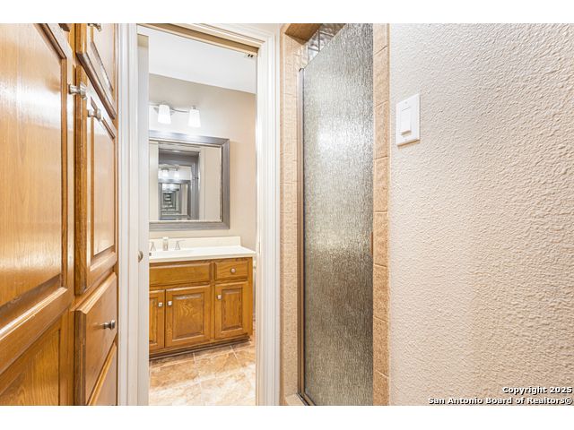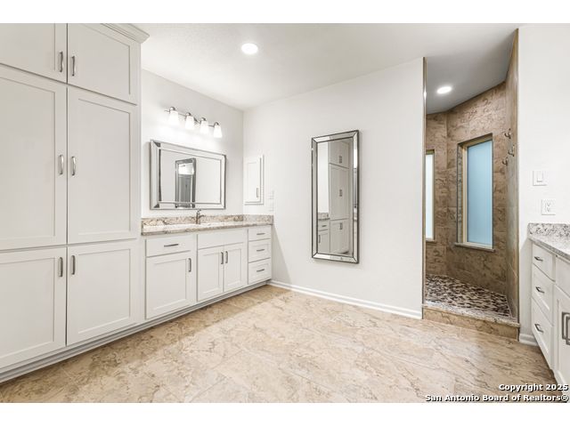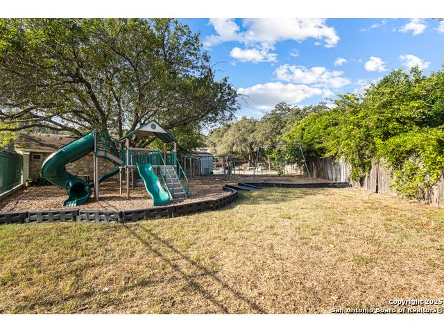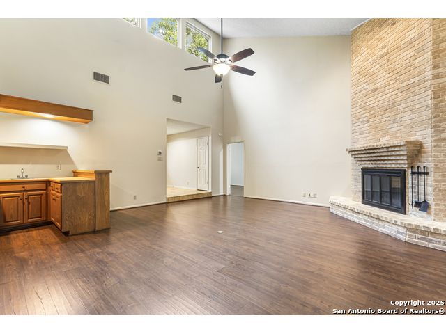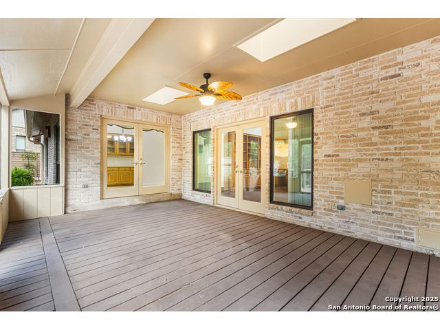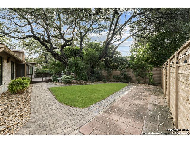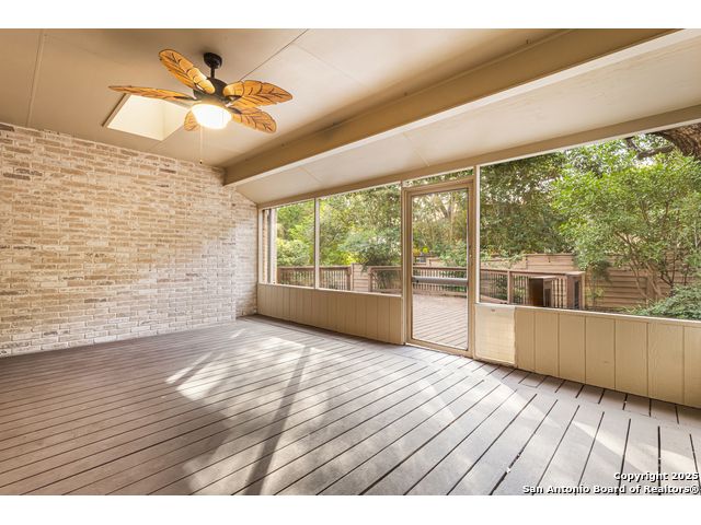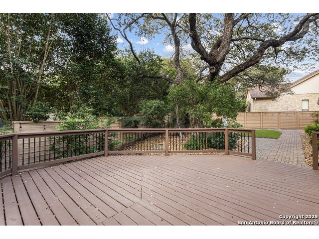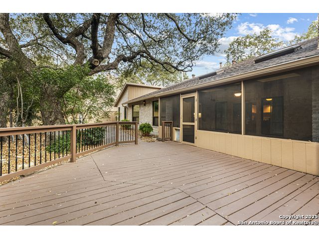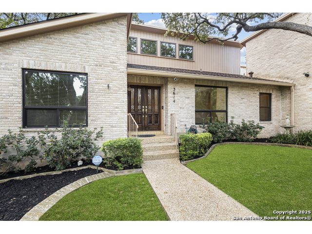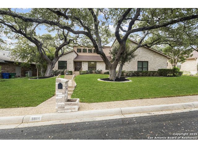 Exceptionally updated single-story home on a quiet cul-de-sac street. This stunning 4-bedroom, 2.5-bath home offers a split bedroom floorplan filled with natural light and recent upgrades throughout. The spacious living room features clerestory windows, built-in bookshelves, a wet bar, and a large fireplace - perfect for entertaining or relaxing. The remodeled primary suite spans the length of the home and showcases a luxurious, newly updated bath with a walk-in shower, dual vanities, and custom cabinetry. Enjoy modern comfort with two HVAC systems and new ductwork, updated roof, windows and doors, and Pergo flooring throughout. The kitchen features updated appliances, granite counters and opens to the breakfast area and screened-in porch - ideal for year-round outdoor enjoyment. You will find mature oak trees throughout, full sprinkler system, and yard lighting in both the front and back yards. Additional highlights include a side-entry garage, deck for entertaining, low-maintenance Fencecrete backyard fence, and freshly painted four-sides brick exterior. Located close to USAA, Medical Center, Alon Market and the convivences of North Central San Antonio.
