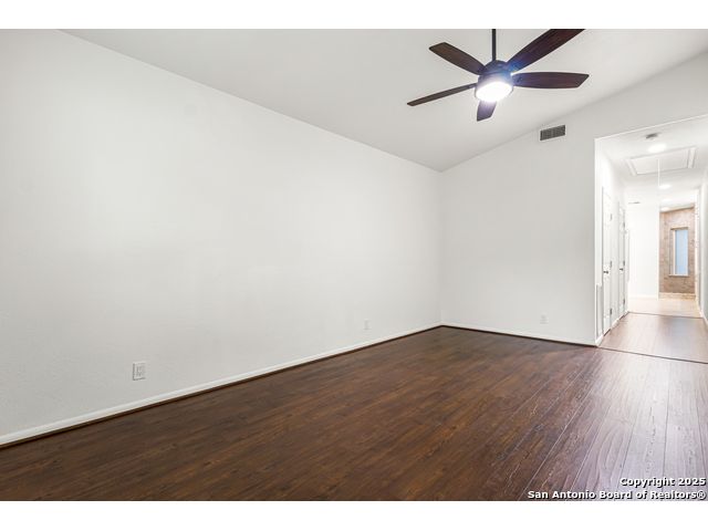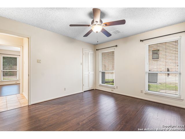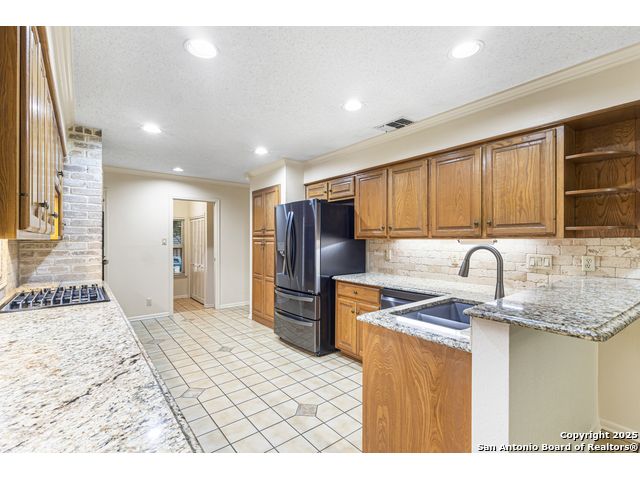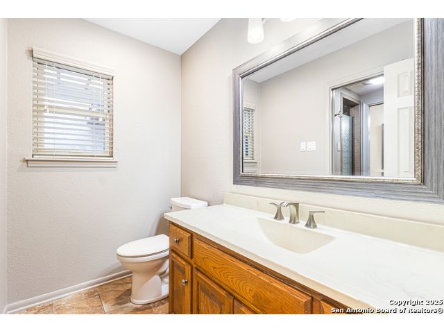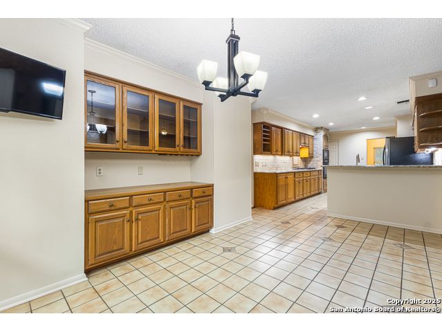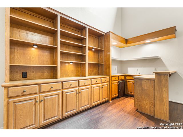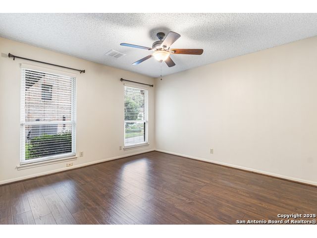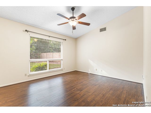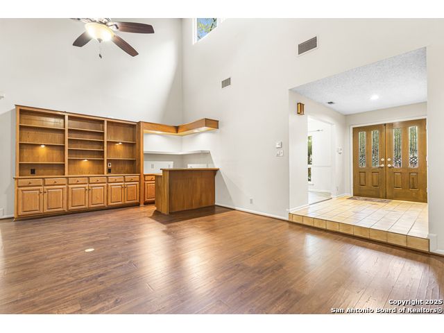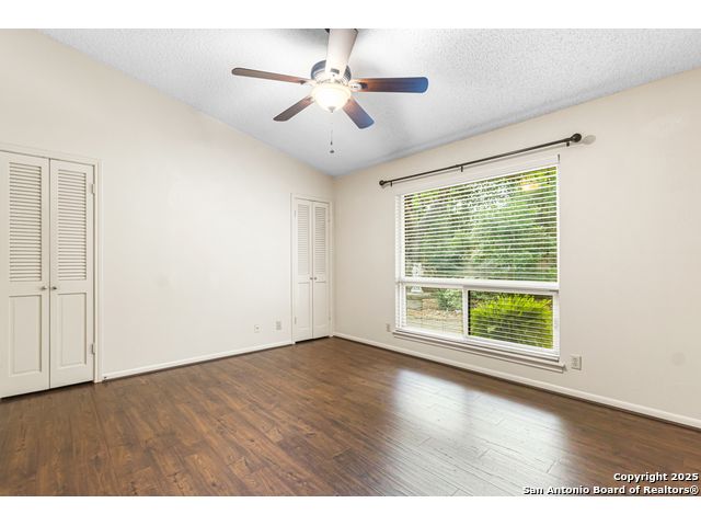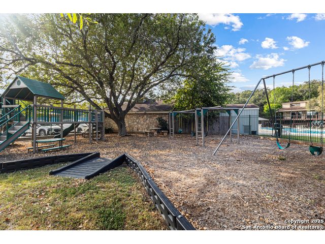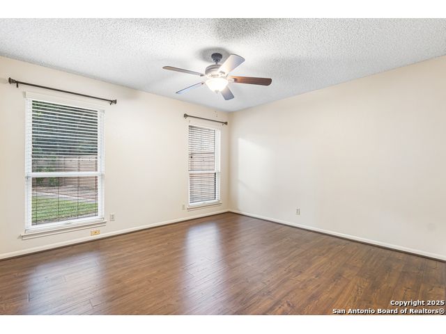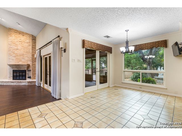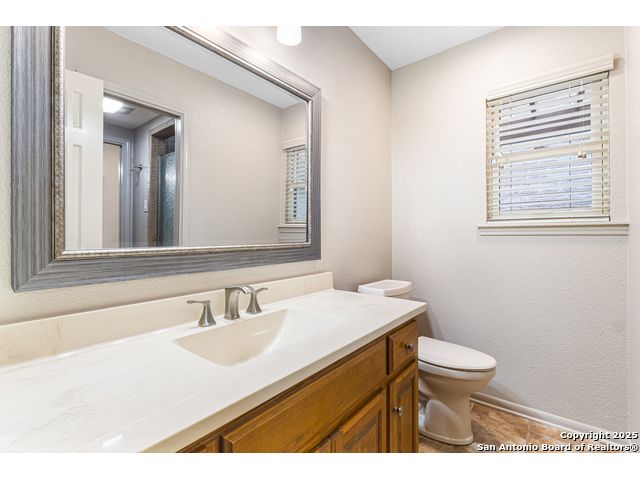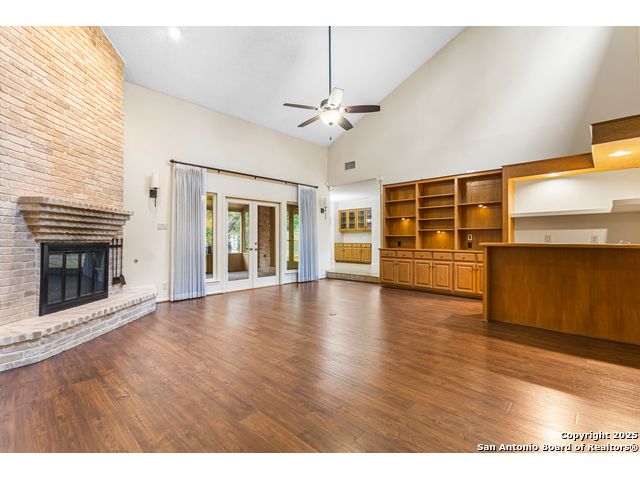 Exceptionally updated single-story home on a quiet cul-de-sac street. This stunning 4-bedroom, 2.5-bath home offers a split bedroom floorplan filled with natural light and recent upgrades throughout. The spacious living room features clerestory windows, built-in bookshelves, a wet bar, and a large fireplace - perfect for entertaining or relaxing. The remodeled primary suite spans the length of the home and showcases a luxurious, newly updated bath with a walk-in shower, dual vanities, and custom cabinetry. Enjoy modern comfort with two HVAC systems and new ductwork, updated roof, windows and doors, and Pergo flooring throughout. The kitchen features updated appliances, granite counters and opens to the breakfast area and screened-in porch - ideal for year-round outdoor enjoyment. You will find mature oak trees throughout, full sprinkler system, and yard lighting in both the front and back yards. Additional highlights include a side-entry garage, deck for entertaining, low-maintenance Fencecrete backyard fence, and freshly painted four-sides brick exterior. Located close to USAA, Medical Center, Alon Market and the convivences of North Central San Antonio.