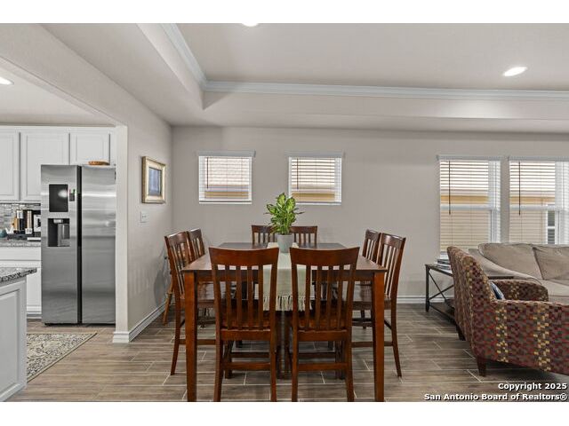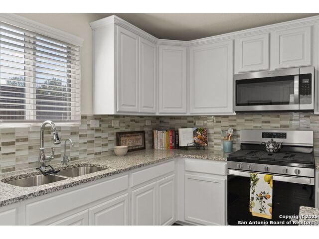 **PRICE REDUCED**Spacious, well-maintained 2 Bedroom / 2 Bath Taft garden home in San Antonio's most desirable 55+ resort community. There are many upgrades throughout the home including a tray ceiling in the living room, popular wood tile-look floors in the main areas of the home, pendant lighting, granite countertops & beautiful white 42" cabinets in the large kitchen. There is also a water softener. This home also features a flex space in the front of the home that can be used as a study, living space, craft room, etc. The spacious ensuite primary bath has dual sinks, large shower and walk-in closet. Outside, you'll love the covered patio, partial wood privacy fence & wrought iron fence. The Hill Country Retreat by Del Webb is one of San Antonio's most established 55+ communities. This quiet, golf cart-friendly neighborhood within a private, gated resort community features a 28,000 sq. ft. Amenity Center, an Activities Director, 1 indoor and 2 outdoor swimming pools, 2 hot tubs, a large fitness center with an indoor walking track, huge event room, pickleball and tennis courts, over 4 miles of walking trails, and over 120 active social groups all exclusive to this community. There is so much to do in this friendly community you will never get bored! It is convenient to shopping, restaurants, hospital, grocery stores and 1604. This is a rare find in this beautiful resort community. Schedule your private showing soon.