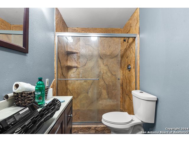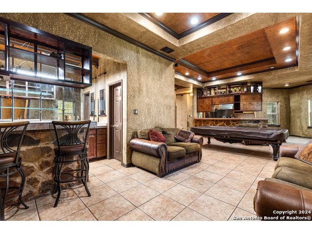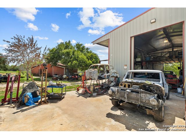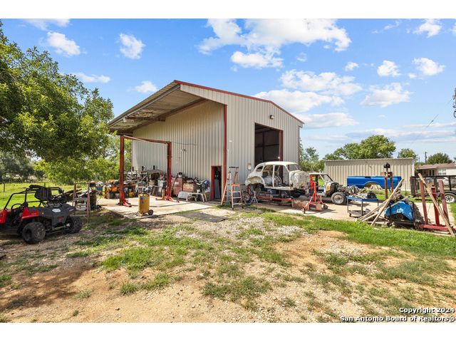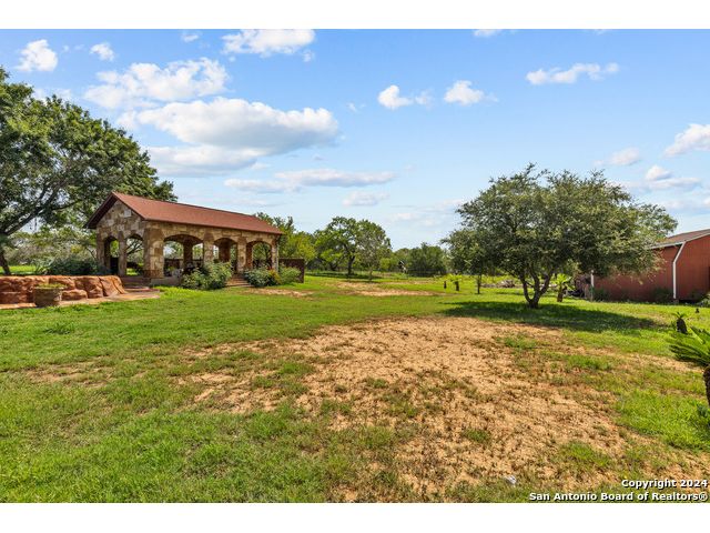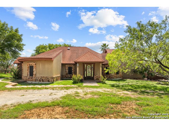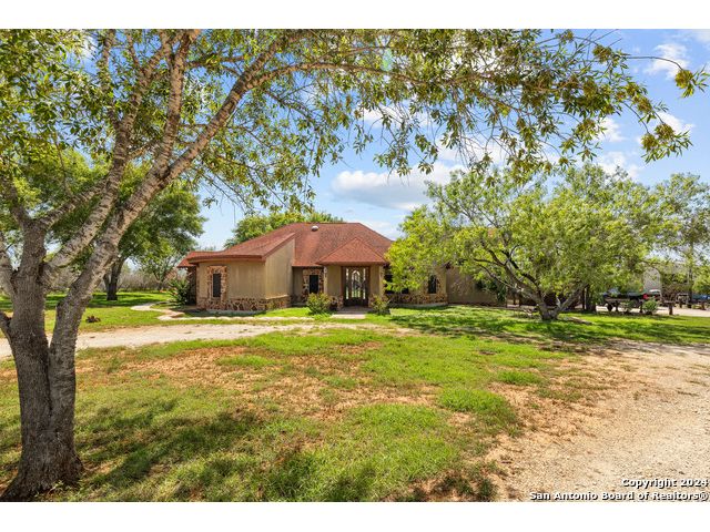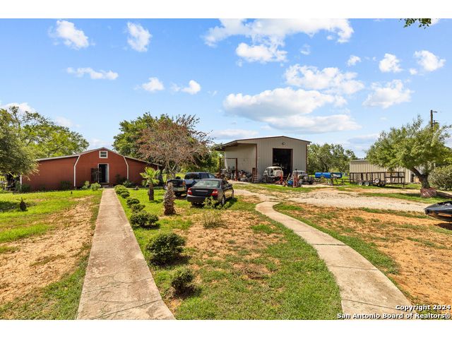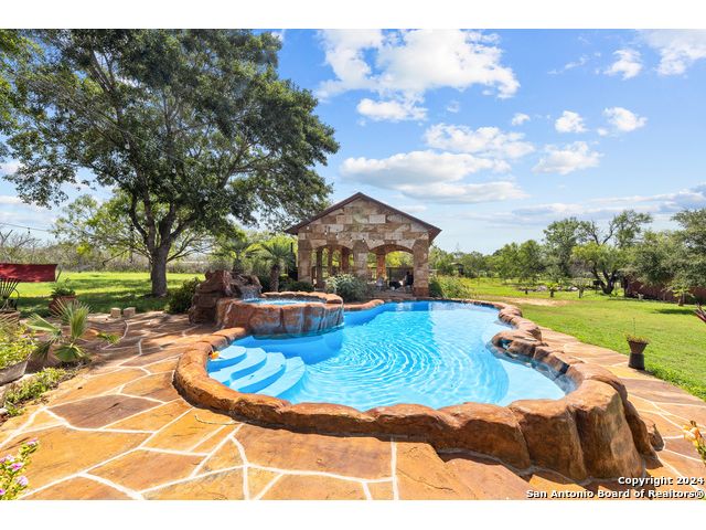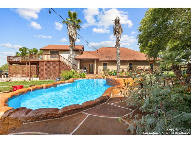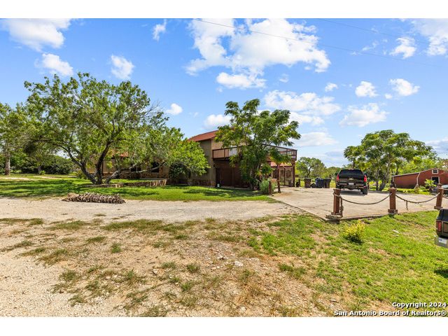 NO HOA! CUSTOM BUILT, SPANISH/MEDITERRANEAN STYLE ESTATE! 2.189 Acres, Large 3 Bedroom 2 1/2 Bath Home, Plus Mother-N-Law Suite, 1 Bedroom, 1 Bath, Kitchen, Living room open to large 2nd floor deck, separate a/c system. Red Barn 1 Bedroom Loft Studio Apartment with kitchenette has its own A/C system. Large 2-level Metal Workshop equipped with 102v/240v, A/C Central air/heat, car lift, pneumatic air system for tools, and two large metal garage doors on a cement slab. Custom-designed pool and jacuzzi pool plus large covered stone-built cabana/gazebo with wraparound deck for entertaining! Property is mostly cleared, bring your farm animals, vehicles, trucks, RV, Boat, etc. Home is amazing, ultra-high-accented ceilings, the master is breathtaking with ultra-high ceilings and a huge custom walk-in closet, and more! Separate large tub, shower, dual vanities, home has a built-in wet bar with refrigerator, sink, and more for entertaining inside, and multiple living areas. A large kitchen with an eat-in bar, appliances, and accents within! 2-car attached garage, 2-car carport attached, and so much more! A Real MUST SEE! 16-foot ceilings in the master fit for a KING! The Kings' Estate is uniquely and unmistakably delineated as you approach the entrance with a custom stone and iron fence sporting accents and an electric /remote gate. In LaVernia, just minutes to San Antonio just outside 1604. Shopping, entertaining, golf, Lake Calaveras is also minutes away, and more! YOU HAVE TO WALK THE KING'S ESTATE TO FEEL AND SEE THE MAJESTY OF THIS GRAND OASIS! ARE YOU THAT KING THIS LAND SEEKS??? HURRY!