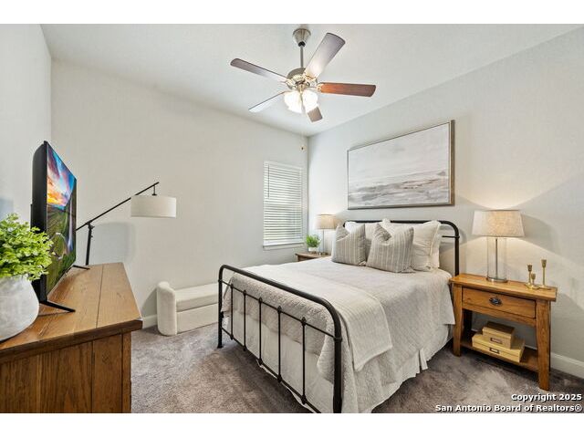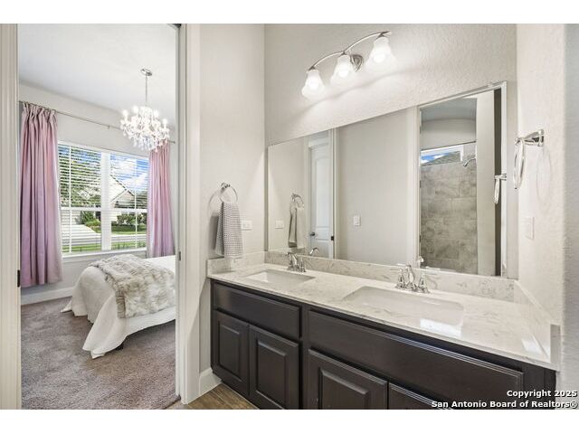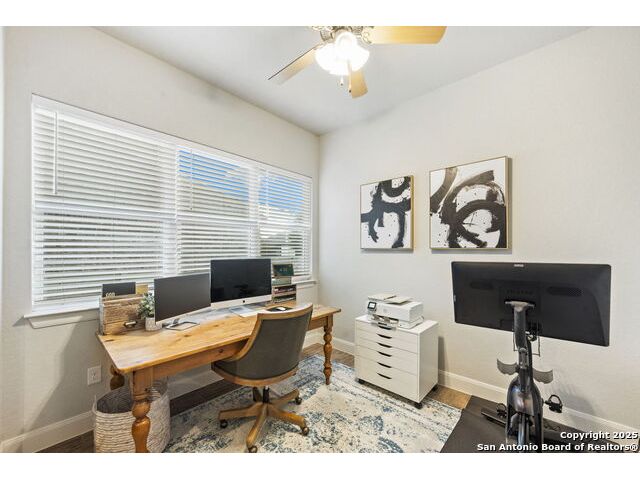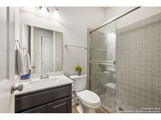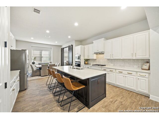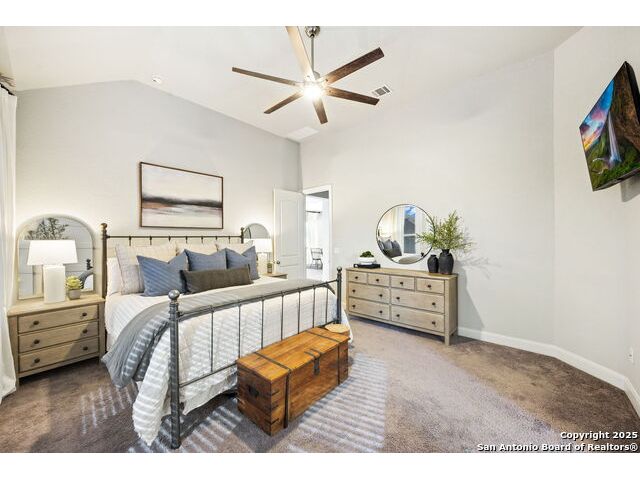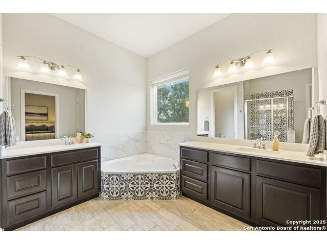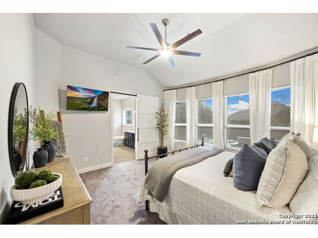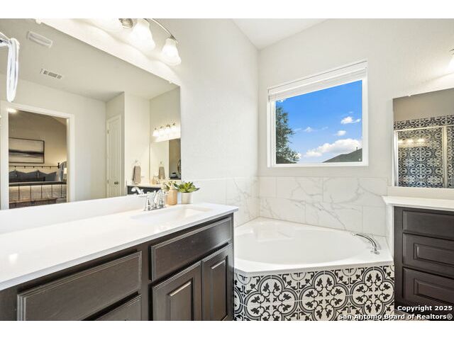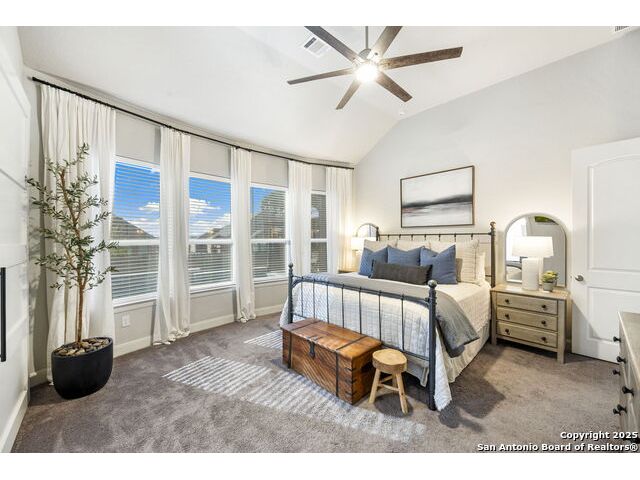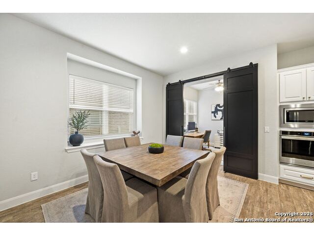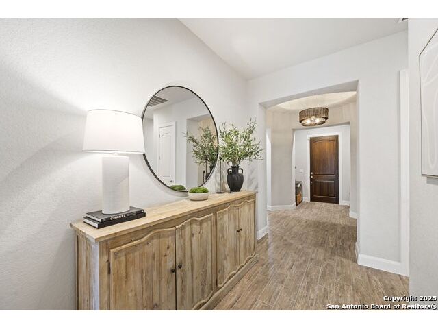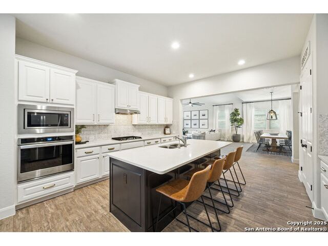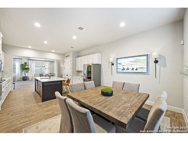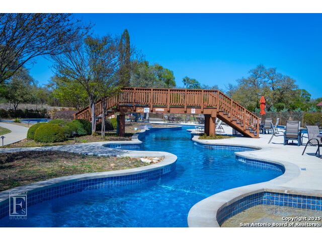 Experience effortless Hill Country living in this stunning single-story home nestled in The Grove at Vintage Oaks-one of New Braunfels' most sought-after communities. Spanning 2,935 square feet, this 4-bedroom, 3.5-bath residence features an open, light-filled floor plan designed for both comfort and connection. The expansive family room with soaring ceilings flows seamlessly into a chef-inspired kitchen and breakfast nook, while a separate dining area provides the perfect space for gatherings and celebrations. A dedicated office offers flexibility for work or creative pursuits, and every room reflects thoughtful craftsmanship and an inviting sense of space. Step outside to your private backyard oasis, where a heated pool, relaxing spa, and shaded pergola create the ultimate retreat for year-round enjoyment. Whether hosting friends or savoring quiet evenings under the stars, this home offers the ideal balance of luxury and leisure. Located in a world-class neighborhood renowned for its resort-style amenities-including multiple pools, a lazy river, fitness center, sports courts, trails, and community events-this residence blends everyday comfort with the best of Hill Country living. Welcome home to The Grove at Vintage Oaks, where style, serenity, and community come together beautifully.