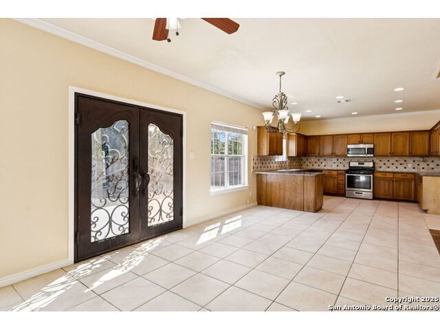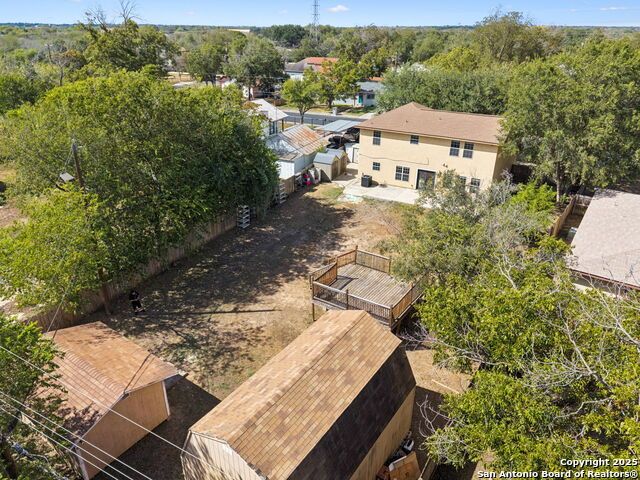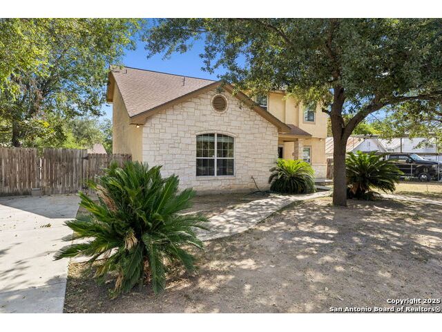 Welcome to your dream home in the heart of San Antonio's Southeast Side with NO HOA! This custom-built two-story residence, constructed in 2008, sits on an expansive 0.36-acre lot adorned with beautiful mature oak trees, offering both shade and charm. With only one proud owner since built, this 2,532-square-foot home features 4 bedrooms plus an office and 3 full baths, blending comfort, style, and practicality-with absolutely no carpet throughout. A large front porch welcomes you through a custom iron-and-glass front door, setting the tone for the quality craftsmanship inside. The main level boasts ceramic tile floors with marble accents, while the staircase and upstairs feature sleek laminate flooring, creating a cohesive and easy-to-maintain interior. Just off the entryway, an open office with glass French doors provides an ideal workspace with natural light and privacy. The open-concept kitchen is a chef's delight, complete with custom cabinetry, granite countertops, a gas stove, and space for an oversized refrigerator. It flows seamlessly into the dining and living areas, making it perfect for entertaining and gatherings. Downstairs, you'll find a huge bedroom with an en suite full bath and spacious walk-in closet, endless opportunities! Upstairs, the primary suite serves as a luxurious retreat featuring a massive walk-in closet and a spa-like en suite bathroom with a stand-up shower, whirlpool tub, and a stackable washer/dryer hookup for added convenience. Two additional generously sized bedrooms, a third full bath, and a versatile loft area offer flexible living space for everyone. Recent upgrades include a new HVAC system and water heater (both replaced in 2023), and the home is fitted with tilt-in windows for energy efficiency and easy cleaning. Step outside through the custom double iron-and-glass doors into your private backyard oasis. The large covered patio is perfect for BBQs and outdoor gatherings, while the spacious yard offers plenty of room to add a pool or create your dream outdoor living area. The lot features gorgeous mature oak trees providing natural shade and beauty throughout the property. An existing deck can stay or be removed, depending on your vision. You'll also love the massive 24x16 two-story shed with electricity, ideal for a workshop, guest suite, or hobby space, plus a second 15x11 shed for extra storage. Located just 6 to 7 miles from downtown San Antonio, this home provides easy access to city attractions including the San Antonio River Walk, La Villita Historic Arts Village, and Brackenridge Park, home to the zoo, Japanese Tea Garden, and Witte Museum. Major highways make commuting simple, and nearby schools, shopping, and dining add to the home's everyday convenience. With its thoughtful design, modern upgrades, and expansive tree-shaded lot, 2822 Lou Street is a rare find offering space, comfort, and endless potential. Schedule your private showing today and see why this one-owner custom home stands out from the rest!