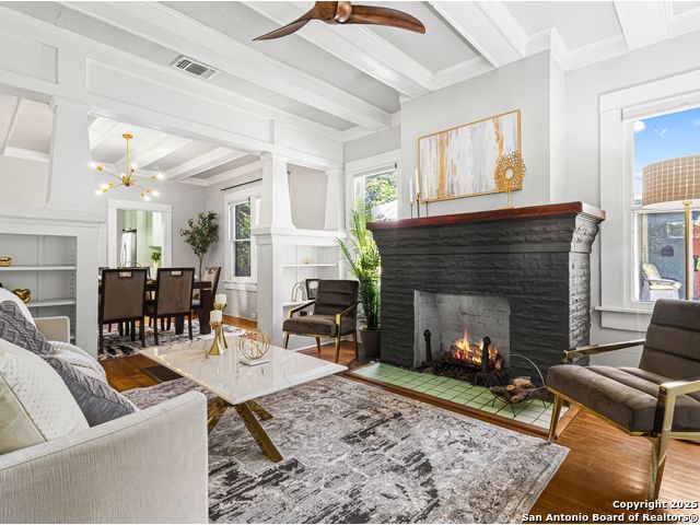 Located in the heart of San Antonio's treasured King William Historic District, 545 Wickes is a beautifully restored 1915 Craftsman cottage that blends classic charm with thoughtful, modern updates. Just steps from the Riverwalk, this home offers the perfect balance of history, culture, and urban convenience. From the curb, you'll notice its timeless lines, freshly painted exterior, and the gleam of a new standing seam metal roof. Inside, the warmth of the home welcomes you immediately - high ceilings, original architectural details, and a layout that feels both intimate and airy. The kitchen is a showstopper! A striking red SMEG Portofino gas range anchors the space, paired with a paneled Bosch dishwasher that blends seamlessly into custom cabinetry. Whether you're a home chef or a collector of beautiful spaces, this kitchen delivers. Both bedrooms are generously sized, and the two full baths have been updated with a respect for the home's period character. Behind the scenes, the work has already been done: a newer high-efficiency HVAC heat pump system, updated electrical and plumbing, and recent foundation leveling provide peace of mind. Out back, you'll find a one-car garage and a gated parking pad with a motorized entry-rare perks in a neighborhood where every square foot counts. 545 Wickes is a rare opportunity to own a piece of San Antonio history-updated for today, but with its soul perfectly intact. NOTE: Be sure to also explore 539 Wickes next door - a sister Craftsman home also available for sale. Together, they present a unique opportunity in one of the city's most storied neighborhoods. ALSO: This property has five years remaining on a transferable historical tax credit!