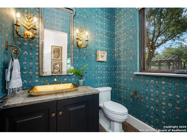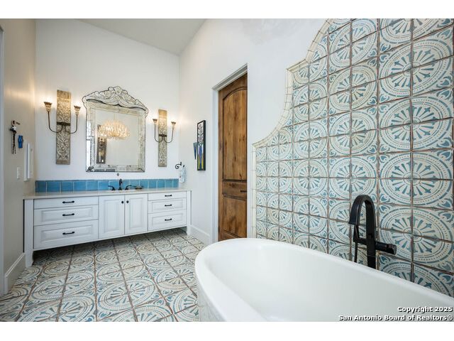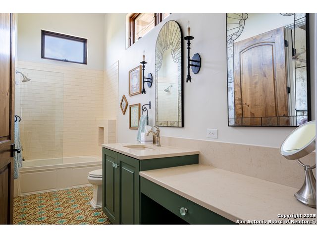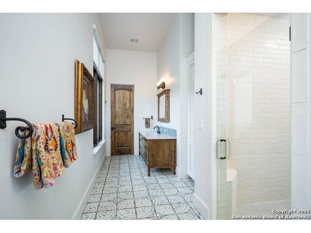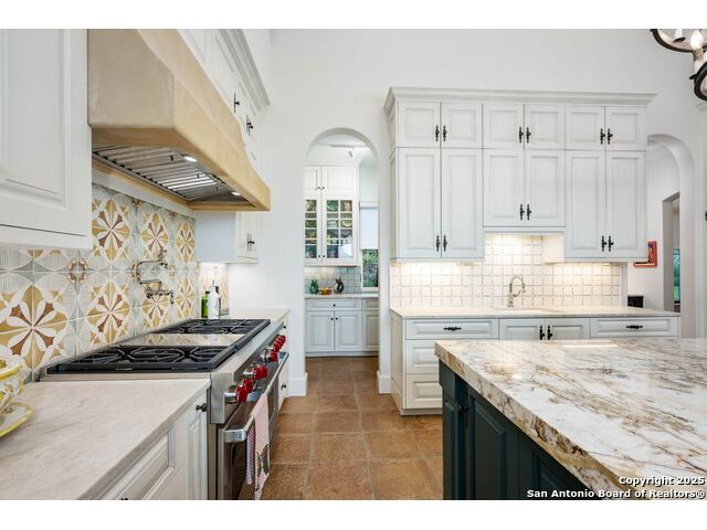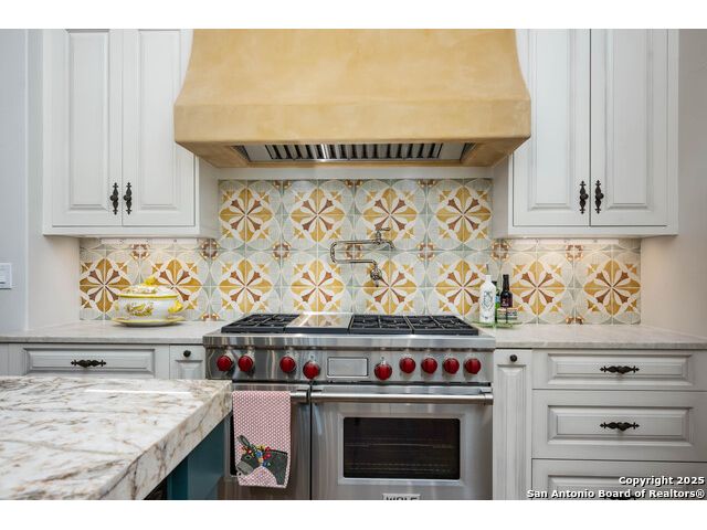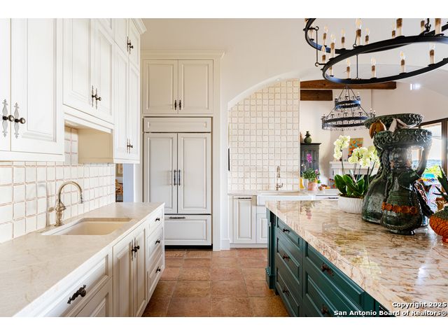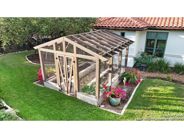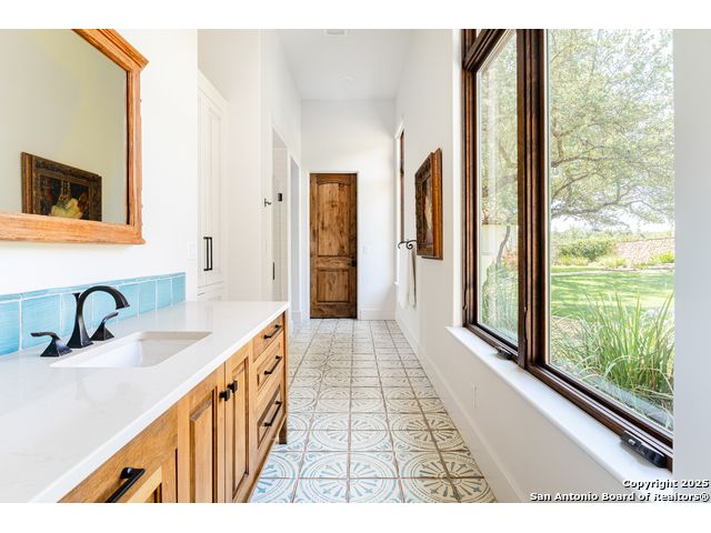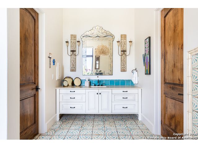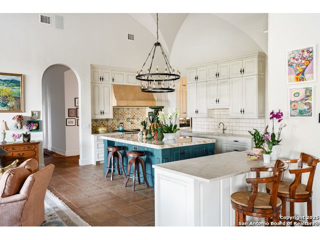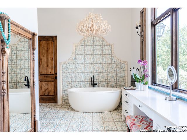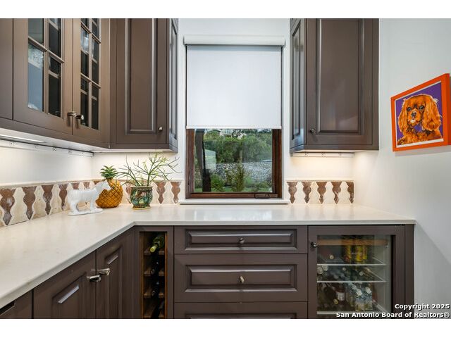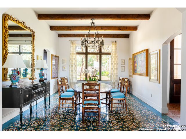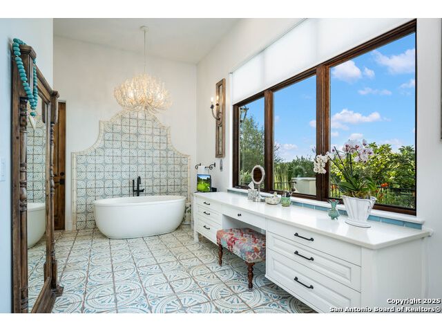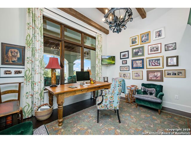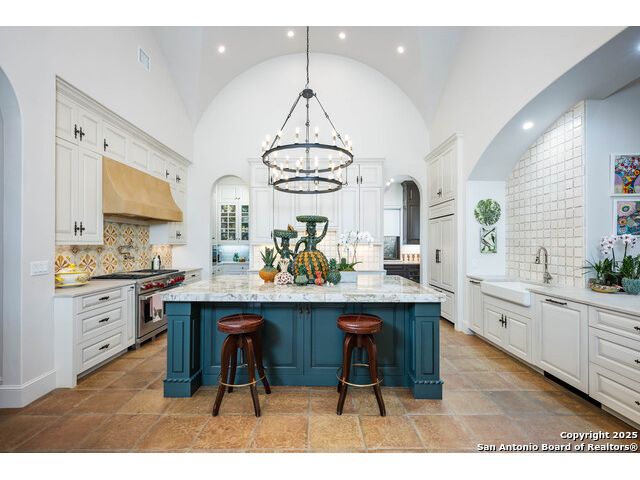 This truly one-of-a-kind property offers exclusive privacy and breathtaking views from every room. Nestled on over 10 AG exempt acres, it combines the luxury of peaceful, rural living with the convenience of being just 10 minutes from La Cantera, The Rim & I10. This home offers an unparalleled living experience in a private, scenic setting. Coming up the drive you are welcomed with a stunning hand-stacked rock wall which leads you to a spacious brick driveway with ample parking. From the moment you arrive, the thoughtful design and attention to detail are evident, setting the tone for the unique and unexpected experience this home has to offer. The home boasts soaring 18-foot ceilings in the main living areas, yet maintains a cozy, welcoming atmosphere. The large living room features one of the home's three fireplaces, with substantial cedar wood-beams lining the ceilings and 8-foot sliding glass doors that open up to spectacular views of the pool and surrounding landscape. The entryway and kitchen area are adorned with gorgeous, hand-troweled, groin-vaulted ceilings, adding timeless architecture. Off the kitchen and family room, you'll find another fireplace surrounded by stacked rock, creating a warm and inviting space. The dining room is has handmade, 1 of a kind, cement tiles. The expansive kitchen is perfect for entertaining, with top-of-the-line appliances, a prep pantry, and a private bar area. The primary suite is a true retreat, featuring coveted dual bathrooms and closets, each designed to offer unmatched privacy. Both spaces are bathed in natural light and offer serene views of the property. It features beautiful tile that exudes a softness, inspired by the elegant charm of the Marais Rue des Rosiers. Off the primary suite, you'll find a charming study, complete with custom built-in cabinets and a beautifully crafted wood-beamed ceiling. On the other side of the home, there are three additional bedrooms, each with ensuite bathrooms and continuous views. Step outside to discover the incredible 1,200+ square-foot patio with an outdoor living area, fireplace and featuring a sparkling pool with an adjoining spa and a fantastic outdoor kitchen-perfect for dining, entertaining, and savoring the peaceful, picturesque surroundings. Tucked away off the patio is a true gardener's highlight, a private garden room & protected exterior garden house. Inviting, understated, and truly one of a kind, this property will be one that you will want to see.