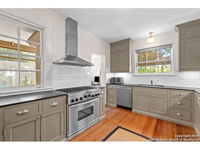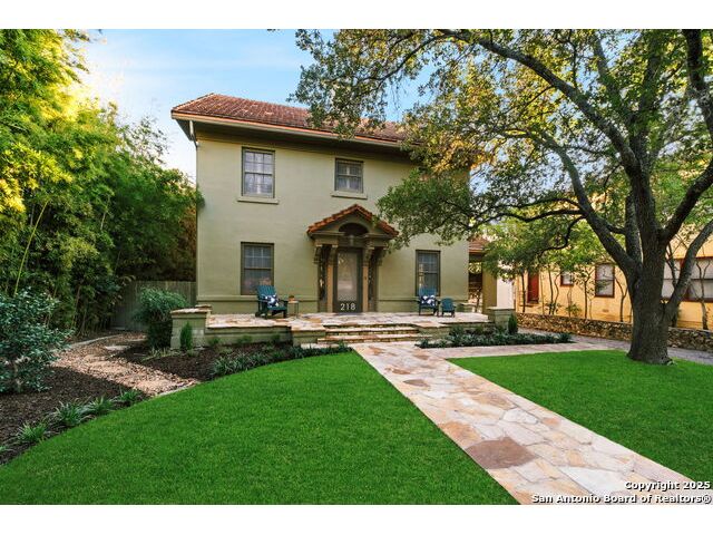 Steps from Landa Library & Gardens, this distinctive Atlee B. Ayres Colonial Revival is a hidden jewel in historic Monte Vista. Enjoy the charm of a walled garden from the wide veranda, while inside offers gracious formal rooms and a spacious floor plan. Beautiful updated kitchen with breakfast room looks out to the large screened in porch and well manicured yard. 3 spacious bedrooms with 2 baths upstairs. The resort-like .4 acre lot backs to Laurel Heights Place and includes a pool, casita/studio, and two-car garage. Additional highlights include a basement, butler's pantry, and porte cochere.