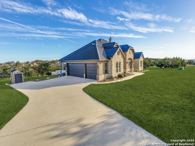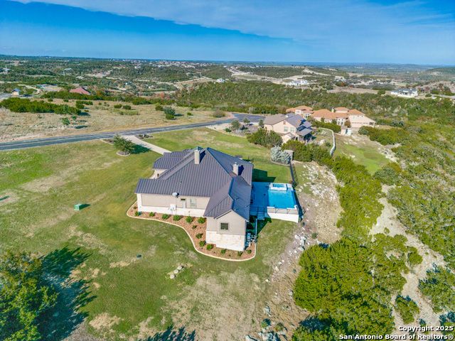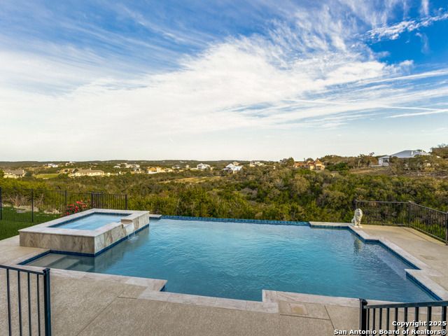 Welcome to Diamond Ridge, one of Boerne's most prestigious gated communities where privacy, and Hill Country views converge. Nestled on a 3.14-acre corner lot, this elegant one-story custom home built by Rittiman Custom Homes embodies timeless craftsmanship with a contemporary Texas flair. Step inside to find a bright, open layout highlighted by high ceilings, wood and tile floors, and expansive windows that capture stunning Hill Country scenery. The spacious living room with stone fireplace flows seamlessly into the formal dining area and gourmet kitchen, designed for both entertaining and everyday living. The kitchen features a large island, custom cabinetry, solid countertops, gas cooking, stainless-steel appliances, walk-in pantry, and abundant storage perfect for the home chef. The primary suite is a true retreat with dual walk-in closets, high ceilings, and a spa-inspired bath featuring a whirlpool tub, separate shower, and double vanities. Three additional bedrooms and three and a half baths ensure comfort for family and guests alike. A dedicated study offers the perfect space for remote work or reading. Relax or entertain on the covered patio with outdoor kitchen overlooking the stunning infinity-edge pool and spa, surrounded by wrought-iron fencing, hill country views, and wide open skies. Enjoy the peaceful setting of Diamond Ridge, featuring controlled access, tennis and basketball courts, clubhouse, BBQ area, fishing pond, and a true community feel. Just minutes from historic downtown Boerne, you'll have easy access to I-10, San Antonio, and Hill Country favorites like wineries, shopping, golf, and outdoor recreation. 37 Radiance delivers an extraordinary Hill Country lifestyle beautifully designed, impeccably maintained, and move-in ready. Schedule your private showing today and experience the balance of comfort, and panoramic views that make this home truly exceptional.