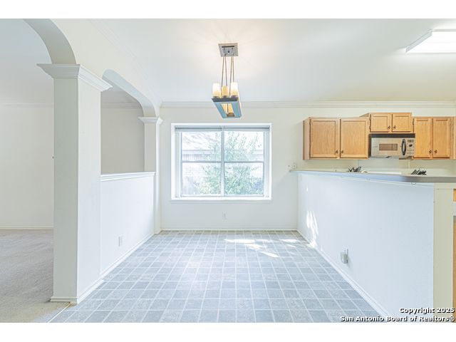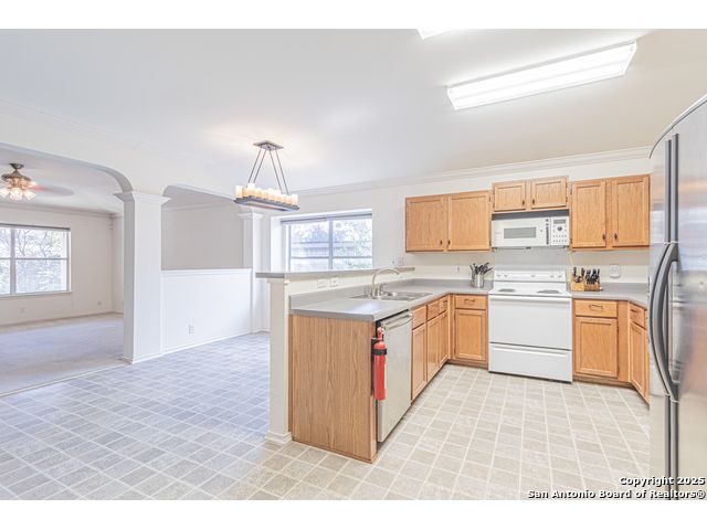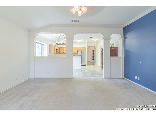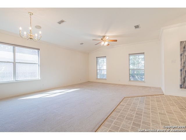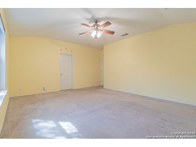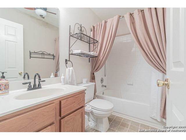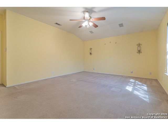 Welcome to this charming 3-bedroom, 2-bath home in the highly desirable Spring Vista community! Offering 2,136 sq. ft. of comfortable living, this home features two spacious living areas, ideal for entertaining, a home office setup, or a cozy retreat. The light-filled kitchen is thoughtfully designed with plenty of cabinet and counter space, a breakfast bar, and a seamless flow into the dining and living spaces-perfect for hosting gatherings. The primary suite offers a peaceful escape with a dual vanity bath and a large walk-in closet, while two additional bedrooms provide flexibility for family, guests, or work-from-home needs. Step outside to your private backyard oasis, complete with a covered patio and ceiling fan for year-round enjoyment. Surrounded by mature landscaping, this outdoor space is perfect for relaxing mornings or evening get-togethers. Conveniently located near Loop 1604, shopping, dining, and schools, this home offers both comfort and accessibility.