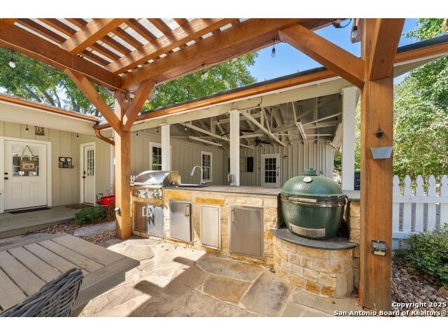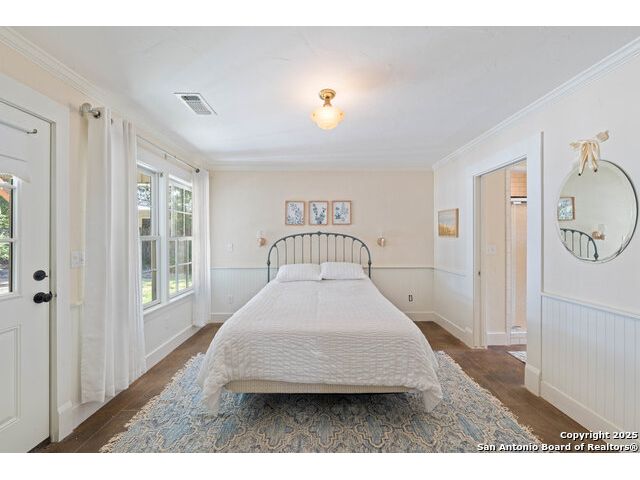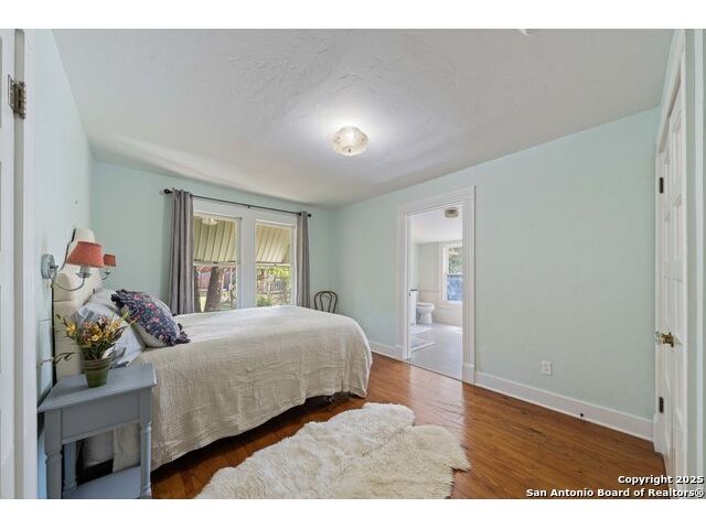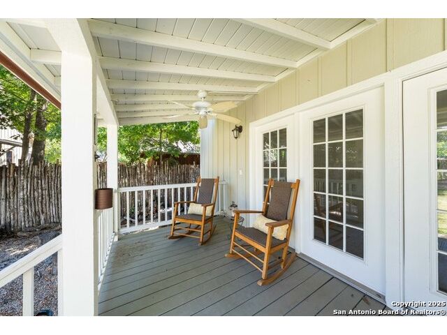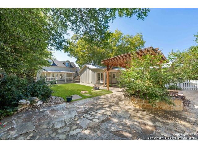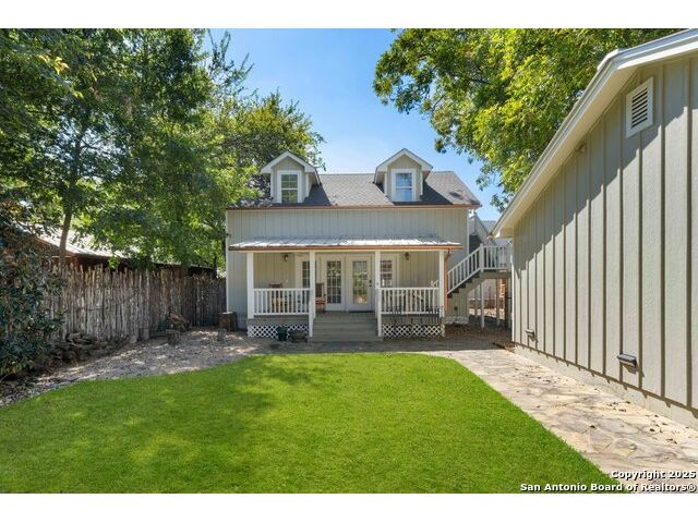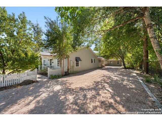 Adorable .35 acre (per survey), multi-structure property which includes a main house that's approved for short-term rental, a guest house and a third structure that has an extra-large upstairs bedroom. Within walking distance, just a few blocks away are Historic Main Street and Marktplatz offering your heart's content of shopping, restaurants and festivals. The main house, built in 1940 (1512 sq ft) has beautiful wood floors, two bedrooms, two bathrooms, an open concept living area and a screened in back porch. The guest house (1048 sq ft) has one bedroom, one and a half bathrooms, living room, kitchenette and brand new water heater (2025). The third structure (630 sq ft) has outside access to the second level featuring an extra-large bedroom with a full bathroom, while the downstairs has a large covered porch and can be finished as extra living space, office, gym, workshop, she-shed or man-cave; the possibilities are endless. Step into your own Secret Garden full of privacy, flora and verdure with gorgeous landscaping, a peach tree, fig tree and pecan trees. Fully fenced in, the outdoor kitchen located in the courtyard is a great space for entertaining including two grills and outside seating. Property also has ample parking with an extra-long driveway that can fit multiple vehicles with an attached carport to the guest house. Additionally, another more private yard can be found at the back of the property and there are two large storage sheds to hide away all your yardwork equipment. Fredericksburg is known for its abundance of vineyards, wineries and tasting rooms and Texas Hill Country is a great place to get away, rest and enjoy nature. For those who like to hike, Enchanted Rock is just 20 minutes away. Take advantage of this awesome property as a family compound, vacation home or income producing short-term rental. Property is being sold AS-IS so ALL appliances stay and most furnishings convey for a move-in ready transition. Buyers intending to use main house as a short-term rental must verify all requirements with the city.