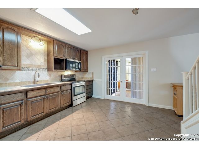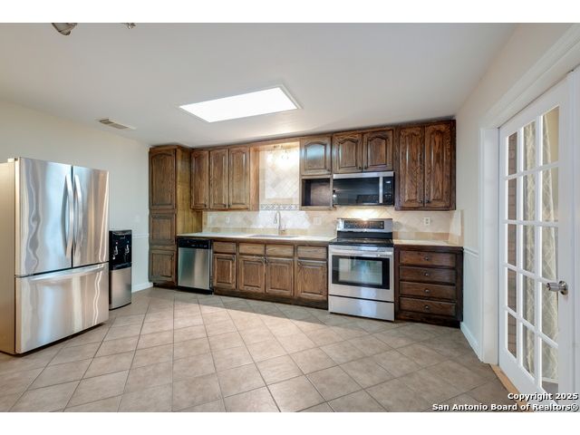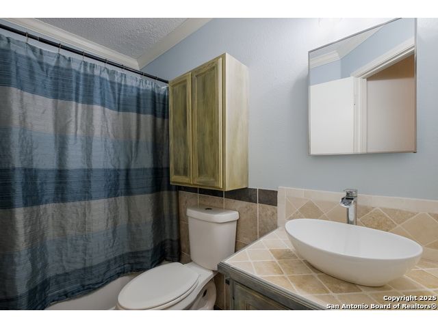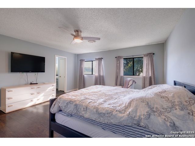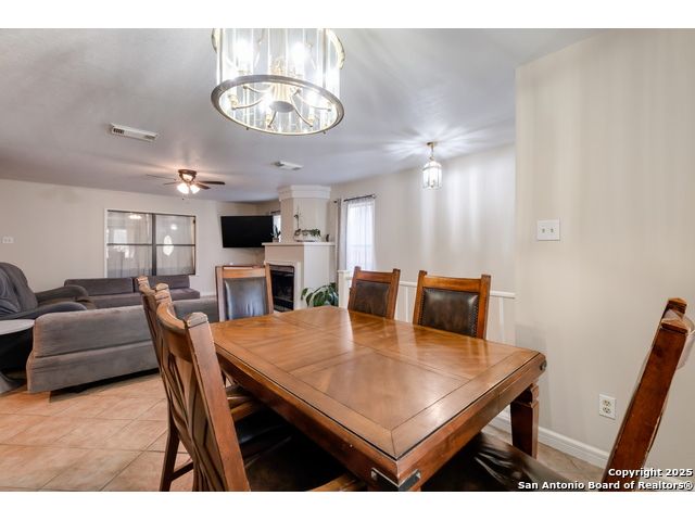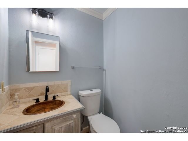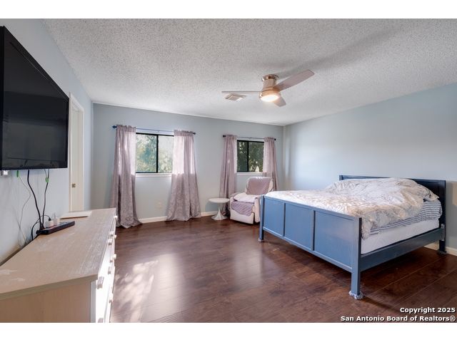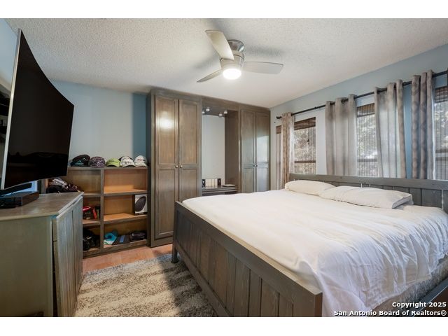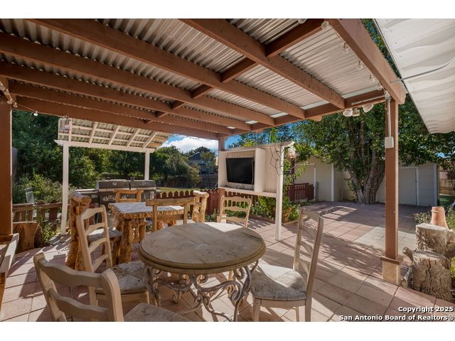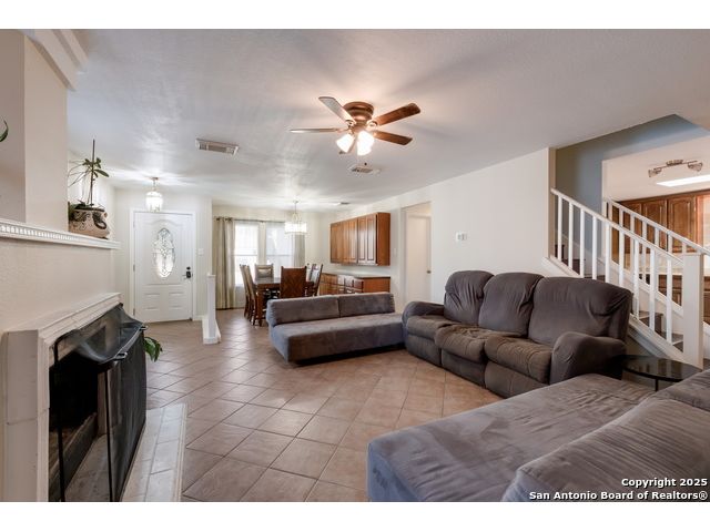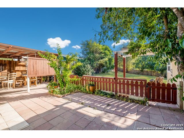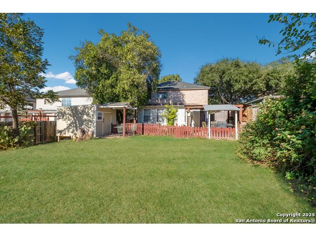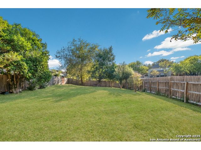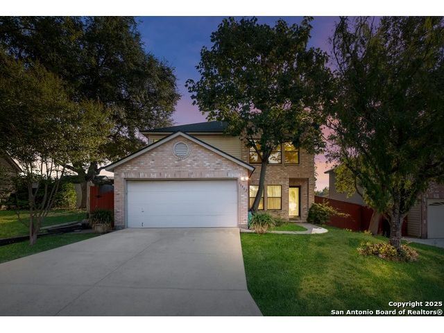 Located in a quiet and desirable area of northeast San Antonio, this well-maintained two-story home showcases pride of ownership with thoughtful updates throughout. The spacious layout offers two living areas, including a large game room or office addition that extends the indoor living space and connects seamlessly to the backyard-ideal for gatherings and entertainment. The kitchen and bathrooms feature custom cabinetry, while the home provides excellent storage and functionality. Outdoors, enjoy a covered patio overlooking a generous yard with a greenbelt backdrop, offering privacy and plenty of room to relax. The lot spans nearly a quarter acre, perfect for entertaining or outdoor projects. Additional highlights include a two-car garage, tile and laminate flooring, and a well-designed layout. Feeling hot during the summer? It's right next door to the neighborhood pool! Conveniently located near shopping, dining, parks, and major roadways, this home combines comfort, character, and a beautiful outdoor living experience.