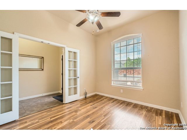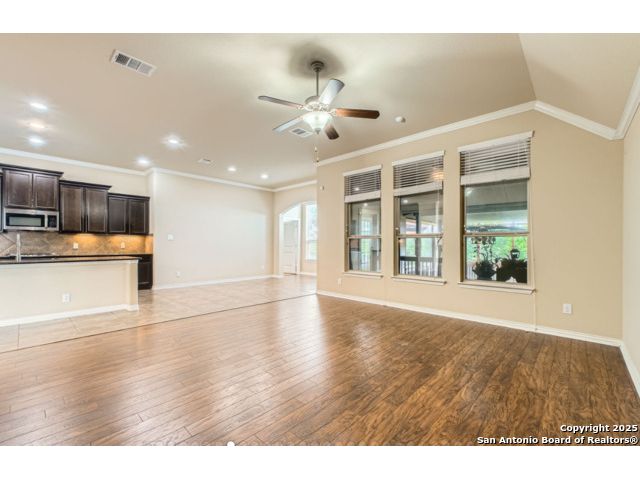 Beautifully maintained 4-bed, 2.5-bath home combining comfort and charm! The primary suite features a walk-in shower and luxurious walk-in tub; guests enjoy their own walk-in shower. No carpet, wood and tile floors throughout for easy care. A new 18.5 SEER HVAC keeps you comfortable year-round. Step onto the large enclosed patio and relax under a redwood pergola with an 8-person jacuzzi, surrounded by mature trees on a peaceful greenbelt. Located in a gated, no-city-tax community with great amenities, this green-certified home includes a full-house water softener plus washer and dryer. Check out our feature sheet for more details.