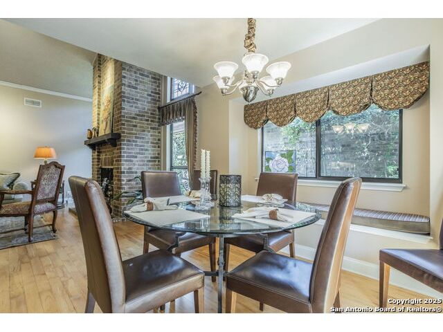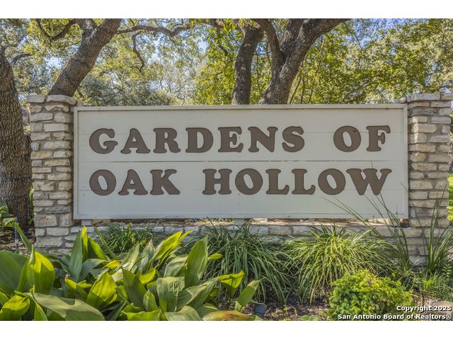 SITUATED IN ONE OF SAN ANTONIO'S MOST DESIRABLE NEIGHBORHOODS, THIS SITTERLE BUILT RESIDENCE FEATURING A TILE ROOF, CORNER TREED LOT, GARDEN LANDSCAPED YARD AND SOPHISTICATED INTERIOR DESIGN AWAITS A NEW OWNER! CONVENIENTLY LOCATED NEAR MCALLISTER PARK, THE AIRPORT, SHOPPING, DINING AND MAJOR EXPRESSWAYS. THE HOME OFFERS HIGH CEILINGS, OPEN DESIGN WITH INCREDIBLE VIEWS FROM EVERY LOCATION. RELAX BY A COZY LIVING ROOM FIREPLACE, CREATE A WONDERFUL MEAL IN YOUR GRANITE COUNTER KITCHEN WITH MODERN APPLIANCES AND GAS COOKING. THE FLOOR PLAN OFFERS A PRIMARY SPACIOUS BEDROOM WITH FULL BATH, 2 SECONDARY BEDROOMS, DINING ROOM, AND SECOND FULL BATH. STEP OUT ON TO YOUR GARDEN PATHS IN THE BACK YARD AND FIRE UP A GRILL, RELAX WITH A GLASS OF WINE OR CUP OF COFFEE AND ENJOY THE PRIVACY OF A WELL DESIGNED, LOW MAINTENANCE YARD. THE GARAGE OFFERS A WORK AREA, WATER SOFTENER, & ATTIC ACCESS. ADD A PLUS OF A SPRINKLER SYSTEM! THE COMMUNITY OF GARDENS OF OAK HOLLOW HAS A VOLUNTARY ASSOCIATION.