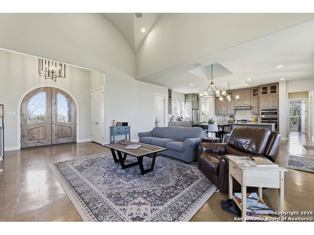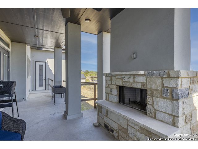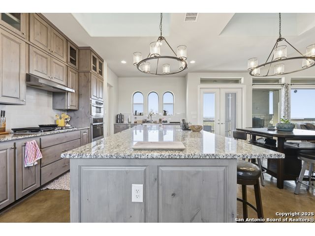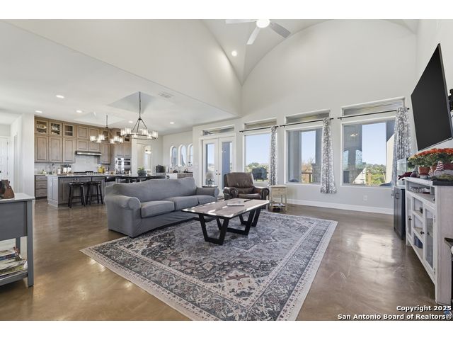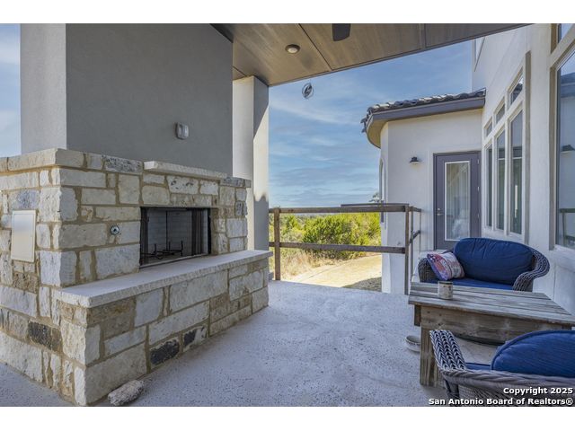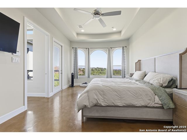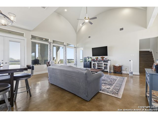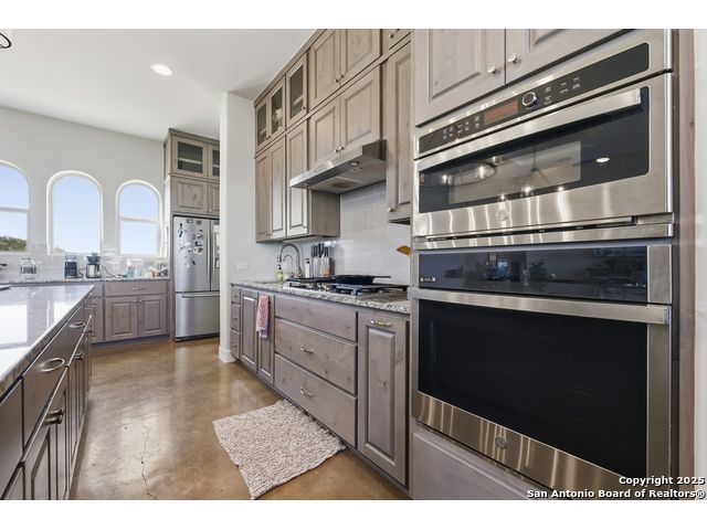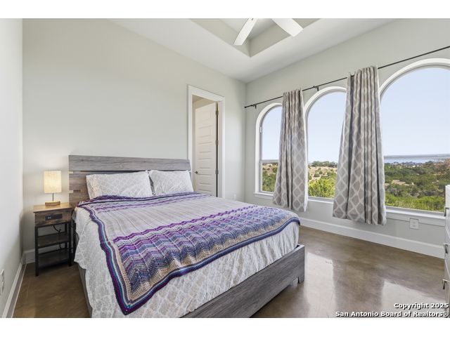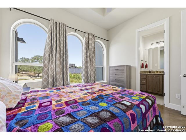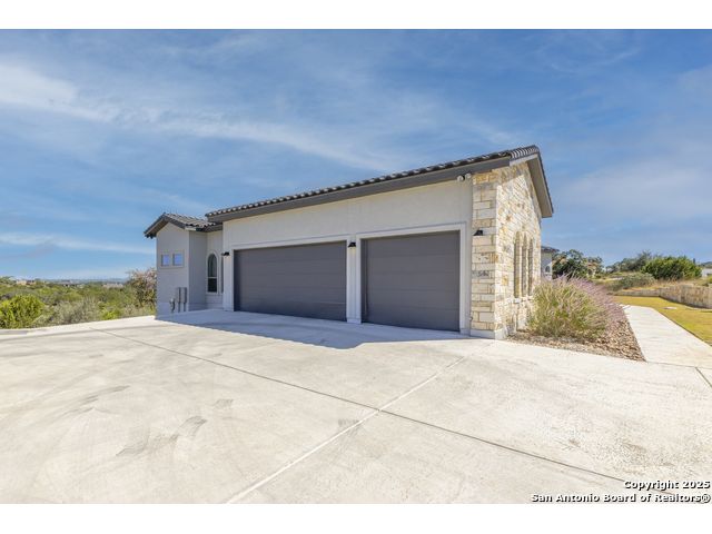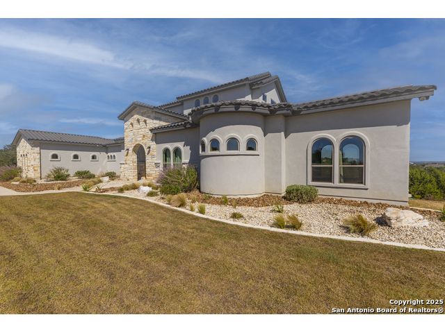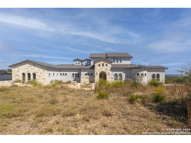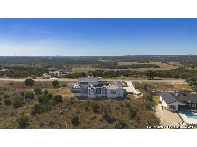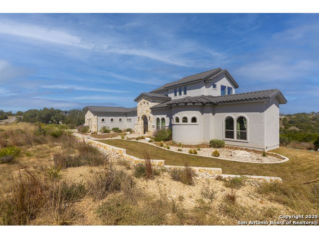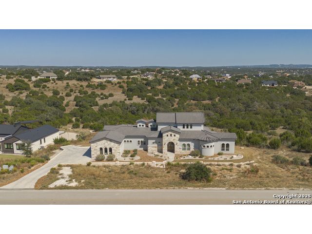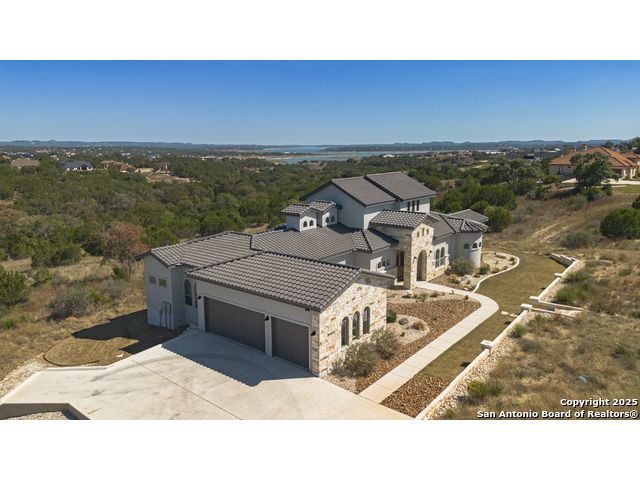 Welcome to your Stunning, 4/2.5(2)/3 home, on 2.66 acres in the absolutely gorgeous Mystic Shores. This home has Amazing views of the Hill Country and you will love the views Canyon Lake. The curb appeal is eye catching with the front and back yard sprinkler system, native and drought resistance plants, and keeping the natural landscape. You will feel right at home here with all the space you get, not only in the bedroom sizes, but the craft room, gym and office and don't forget the Loft upstairs with its own half bath. You have a 3 car, attached garage with a side entry. As you enter this beautifully light filled home, take note of the gorgeous wood front door and the notable stained concrete flooring. The entry is wide and flows into your open floor plan home. Your living room features an incredible Groin Ceiling and bespoke windows for that natural light to come through. Your dining area is open to the kitchen and shows off an exquisite chandelier. The gourmet kitchen, the heart of any home, gives you gorgeous granite counter tops, classic white subway tile, stainless steel appliances, an island with breakfast bar, graceful custom wood cabinets that offer a tremendous amount of space, gas cooking, a vegetable sink, a farm sink, a built in oven and microwave and a large walk in pantry. The granite is consistent throughout the home. There is a half bath off the kitchen area that gives access to the patio. Your laundry room features a sink, a dog wash station and more spacious cabinets for additional storage. Your master bedroom offers dramatic views with the stately bay style windows, you have a dry bar and separate his/hers closets. The master bath offers a separate garden tub and walk through shower with three shower heads, separate double vanities and is ready to be your own private retreat. Off your master bath is the exercise room with rubber flooring. Your secondary bedrooms leave plenty of room for everyone to have their own peace. Upstairs you have the loft with vaulted ceilings, with sparkling windows throughout and a half bath. Your back features a covered patio with a gas fireplace that is perfect for your morning coffee, or evening wine, to sit and take in the immense views you have. The patio is plumbed for an outdoor kitchen and is ready to help you relax with the outdoor fireplace. This home is priced below assessed value and is a true Hill Country gem! You are close to shopping and restaurants. You will love the lifestyle you get here with the controlled gated, waterfront access in the neighborhood, walk/jog/bike trails, sports courts and clubhouse with park and playground. Don't miss your opportunity to own this piece of Texas heaven!