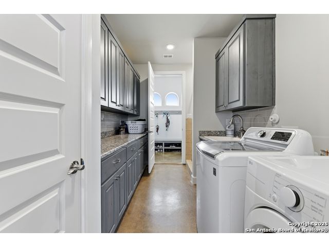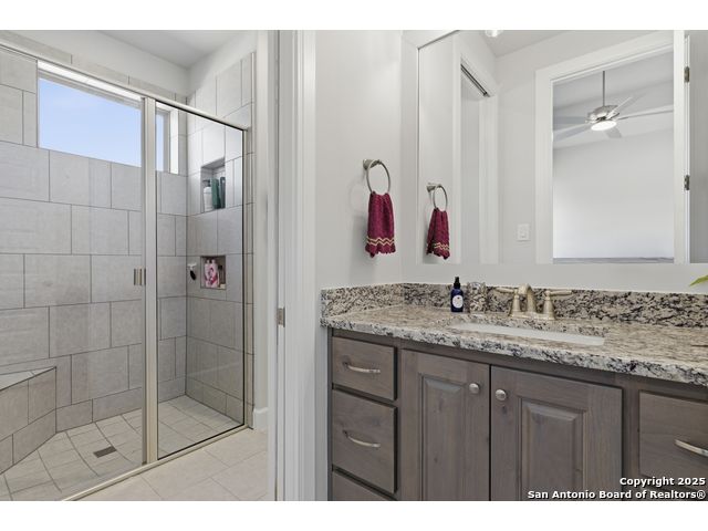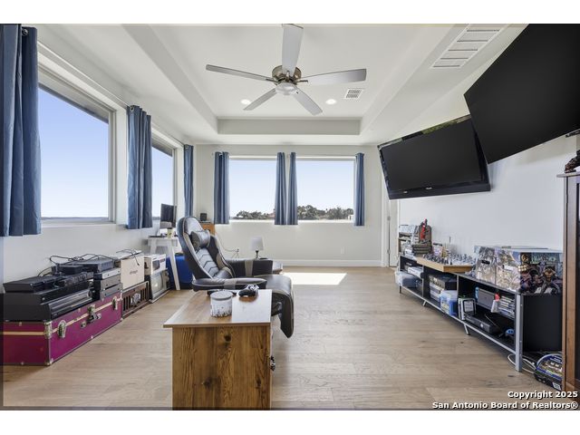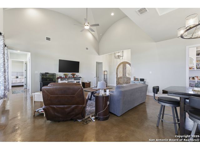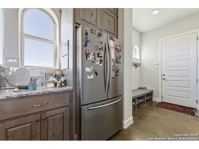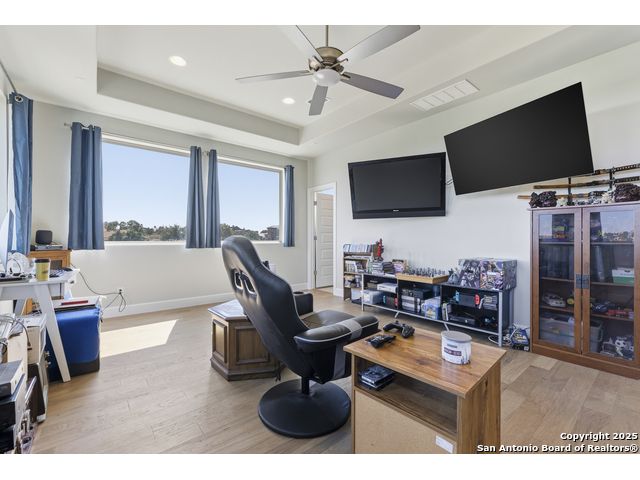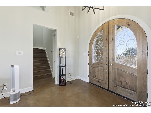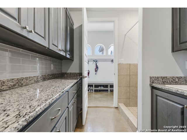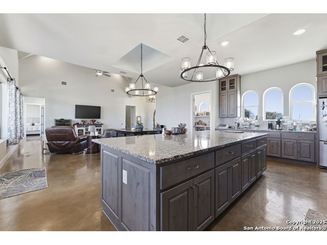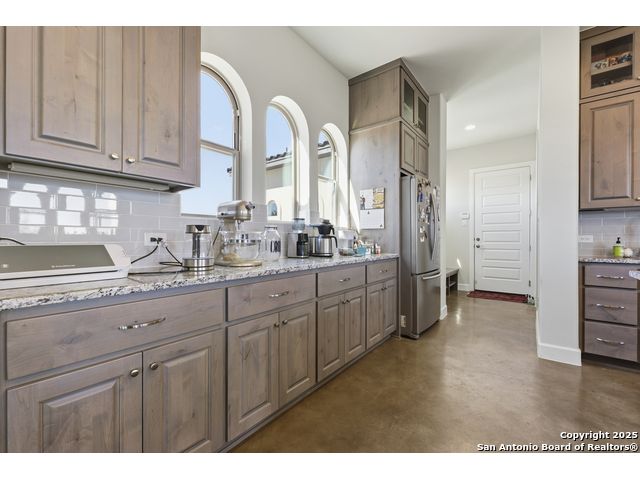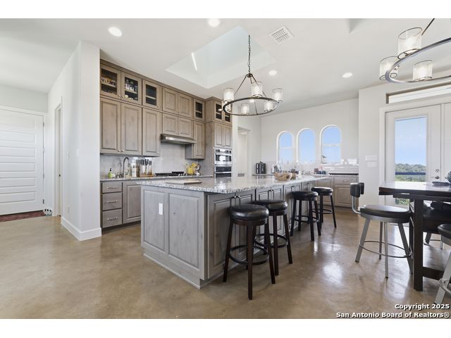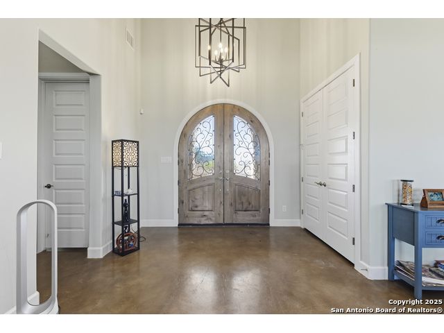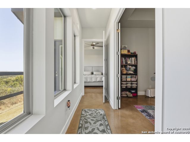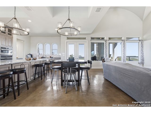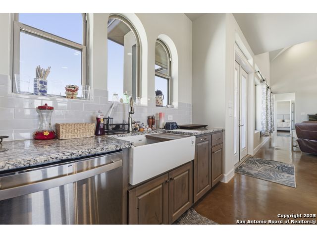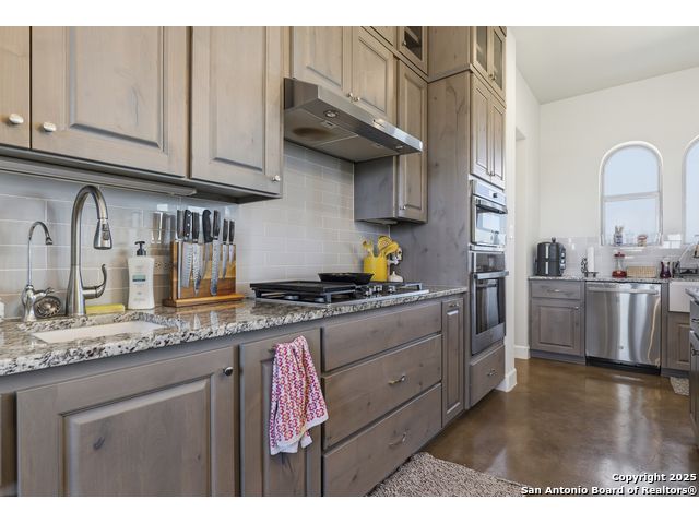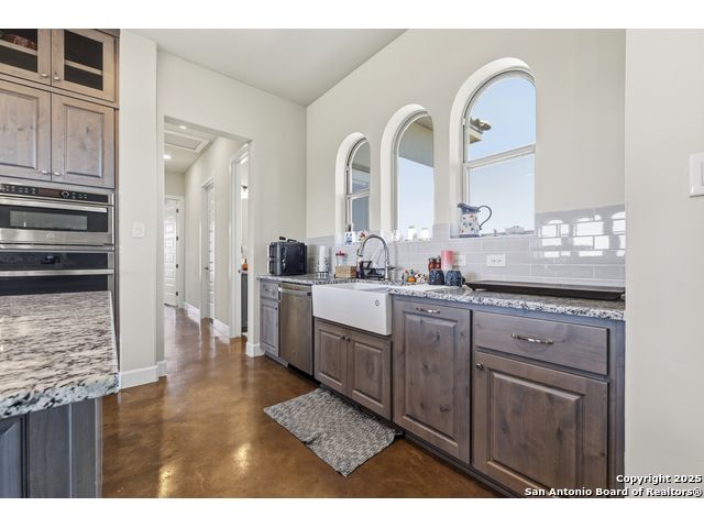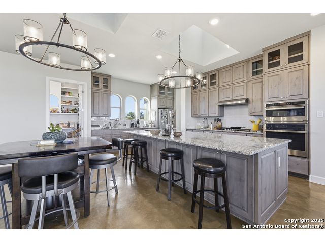 Welcome to your Stunning, 4/2.5(2)/3 home, on 2.66 acres in the absolutely gorgeous Mystic Shores. This home has Amazing views of the Hill Country and you will love the views Canyon Lake. The curb appeal is eye catching with the front and back yard sprinkler system, native and drought resistance plants, and keeping the natural landscape. You will feel right at home here with all the space you get, not only in the bedroom sizes, but the craft room, gym and office and don't forget the Loft upstairs with its own half bath. You have a 3 car, attached garage with a side entry. As you enter this beautifully light filled home, take note of the gorgeous wood front door and the notable stained concrete flooring. The entry is wide and flows into your open floor plan home. Your living room features an incredible Groin Ceiling and bespoke windows for that natural light to come through. Your dining area is open to the kitchen and shows off an exquisite chandelier. The gourmet kitchen, the heart of any home, gives you gorgeous granite counter tops, classic white subway tile, stainless steel appliances, an island with breakfast bar, graceful custom wood cabinets that offer a tremendous amount of space, gas cooking, a vegetable sink, a farm sink, a built in oven and microwave and a large walk in pantry. The granite is consistent throughout the home. There is a half bath off the kitchen area that gives access to the patio. Your laundry room features a sink, a dog wash station and more spacious cabinets for additional storage. Your master bedroom offers dramatic views with the stately bay style windows, you have a dry bar and separate his/hers closets. The master bath offers a separate garden tub and walk through shower with three shower heads, separate double vanities and is ready to be your own private retreat. Off your master bath is the exercise room with rubber flooring. Your secondary bedrooms leave plenty of room for everyone to have their own peace. Upstairs you have the loft with vaulted ceilings, with sparkling windows throughout and a half bath. Your back features a covered patio with a gas fireplace that is perfect for your morning coffee, or evening wine, to sit and take in the immense views you have. The patio is plumbed for an outdoor kitchen and is ready to help you relax with the outdoor fireplace. This home is priced below assessed value and is a true Hill Country gem! You are close to shopping and restaurants. You will love the lifestyle you get here with the controlled gated, waterfront access in the neighborhood, walk/jog/bike trails, sports courts and clubhouse with park and playground. Don't miss your opportunity to own this piece of Texas heaven!